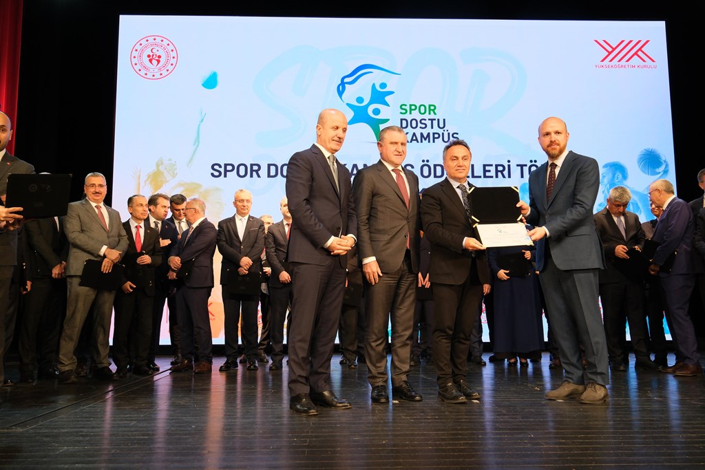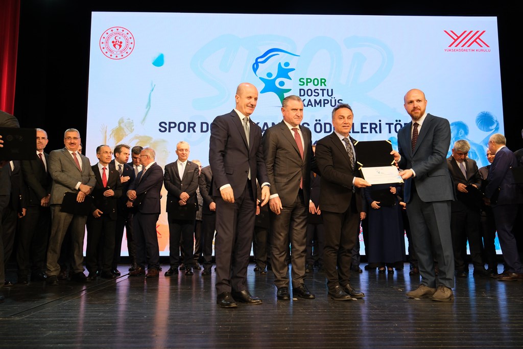 Üniversitemize Spor Dostu Kampüs Sertifikası, İlim Yayma Vakfı Mütevelli Heyeti Başkanı Necmettin Bilal Erdoğan, Gençlik ve Spor Bakanı Osman Aşkın Bak ve Yüksek Öğretim Kurulu (YÖK) Başkanı Prof. Dr. Erol Özvar tarafından Rektörümüz Prof. Dr. Fatih Yılmaz’a takdim edildi.