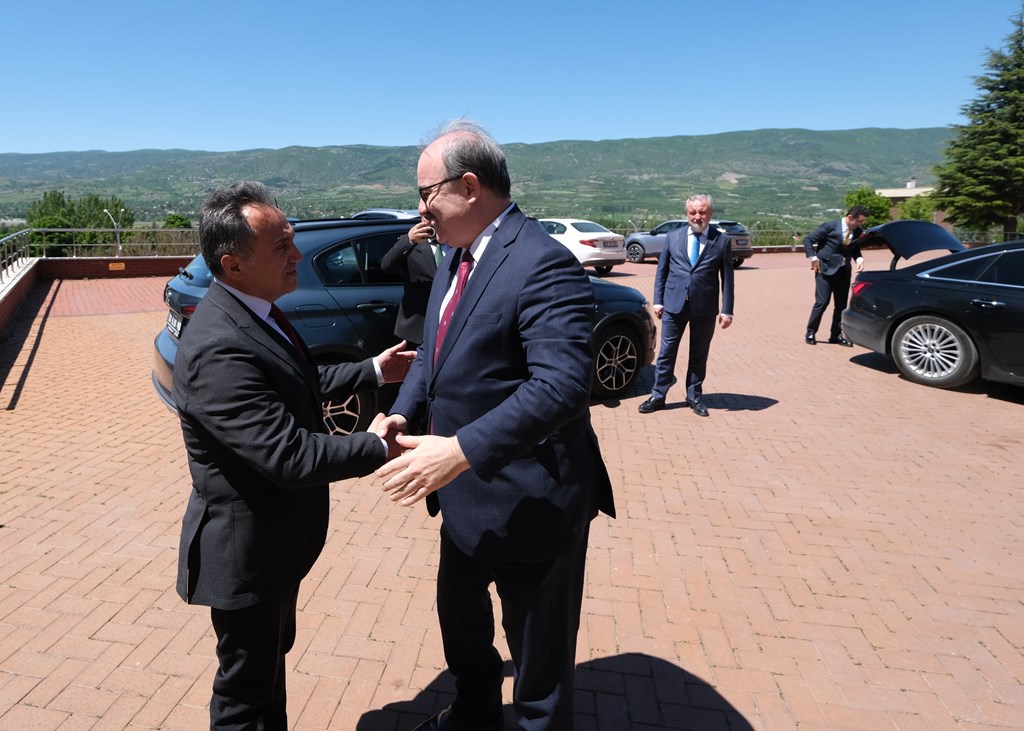 Toplantı öncesinde Bakan Yardımcısı Dr. Serdar Çam, Üniversitemiz Rektörü Prof. Dr. Fatih Yılmaz’ı ziyaret etti. Ziyarette, üniversitenin eğitim çalışmaları, kültürel faaliyetleri ve yerel kalkınmaya katkısı üzerine görüş alışverişinde bulunuldu. Rektörümüz Prof. Dr. Fatih Yılmaz, Bakan Yardımcısı Dr. Serdar Çam’a ziyaretlerinden dolayı teşekkürlerini iletti. Bakan Yardımcımız da Rektörümüze özverili çalışmalarından dolayı teşekkür ederek çalışmalarında başarılar diledi.