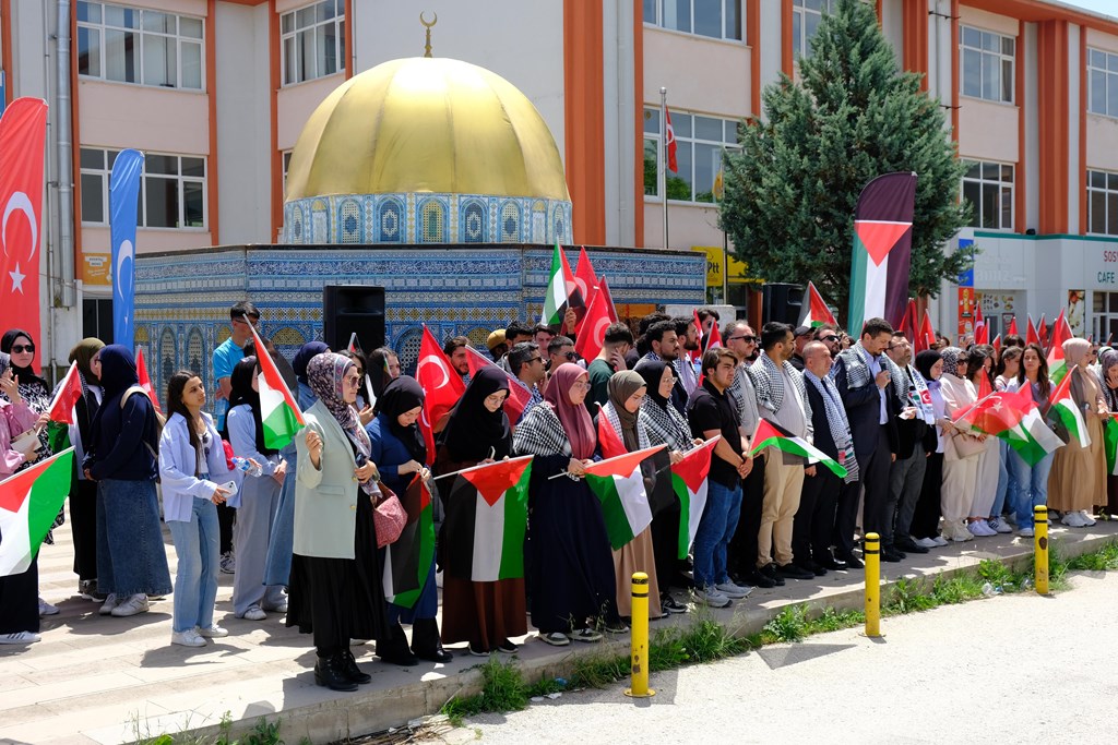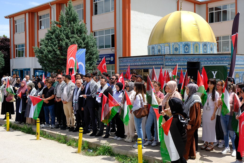 TOGÜ Yeniler Kulübü akademik danışmanı Dr. Öğretim Üyesi İbrahim Enes Öner tarafından okunan basın açıklamasında, Gazze’de süregelen saldırılar ve yaşanan kayıplara dikkat çekilerek, uluslararası toplumun sessizliğine tepki gösterildi. Zulmün bir an önce son bulması gerektiği vurgulanırken, üniversite öğrencilerinin Filistin halkının yanında oldukları ifade edildi. Basın açıklamasının sonunda, tüm katılımcılar Gazze’de yaşanan acılara karşı duyarlılık çağrısında bulunarak, birlik ve dayanışma mesajı verdi.