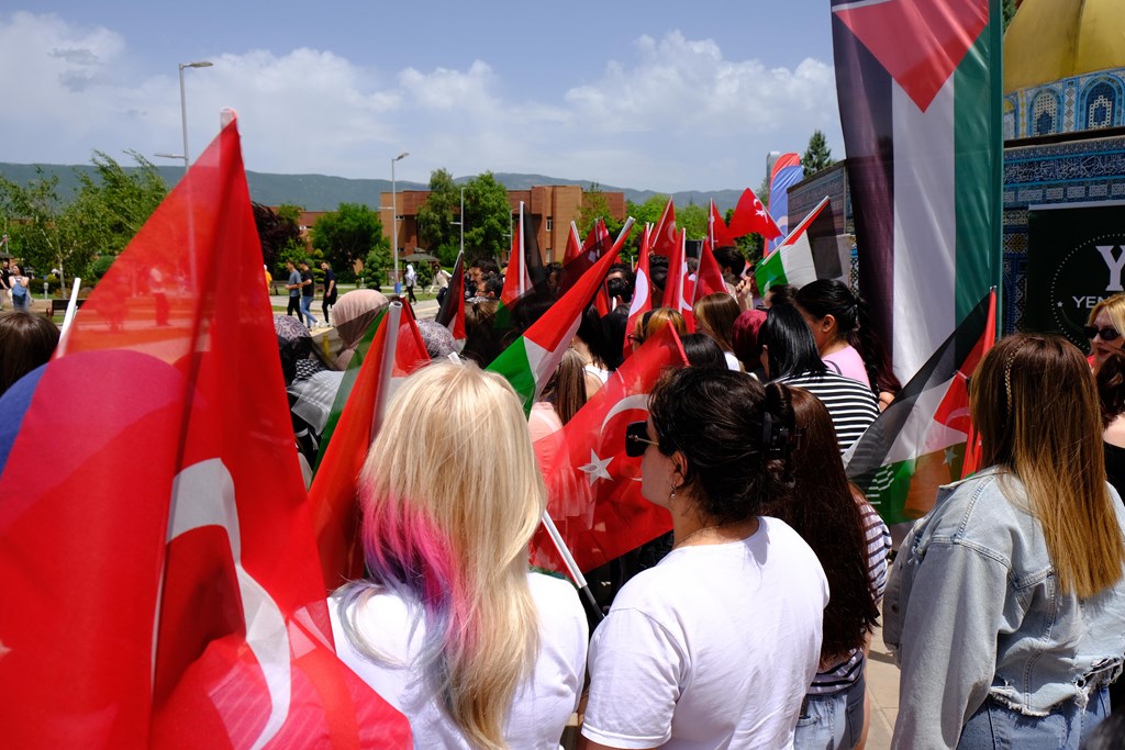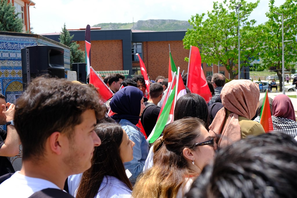 Üniversitemizde faaliyet gösteren 30’un üzerinde öğrenci kulübü, Gazze’de yaşanan insanlık dramına dikkat çekmek ve Filistin’e destek olmak amacıyla ortak bir basın açıklaması gerçekleştirdi. "Gazze İçin Ayağa" başlığıyla düzenlenen etkinlik, üniversitemiz merkezi yemekhane önünde yoğun katılımla yapıldı. Gerçekleştirilen basın açıklamasına, Üniversitemiz Rektör Yardımcısı Prof. Dr. Yusuf Temür de katılarak öğrencilere destek verdi.