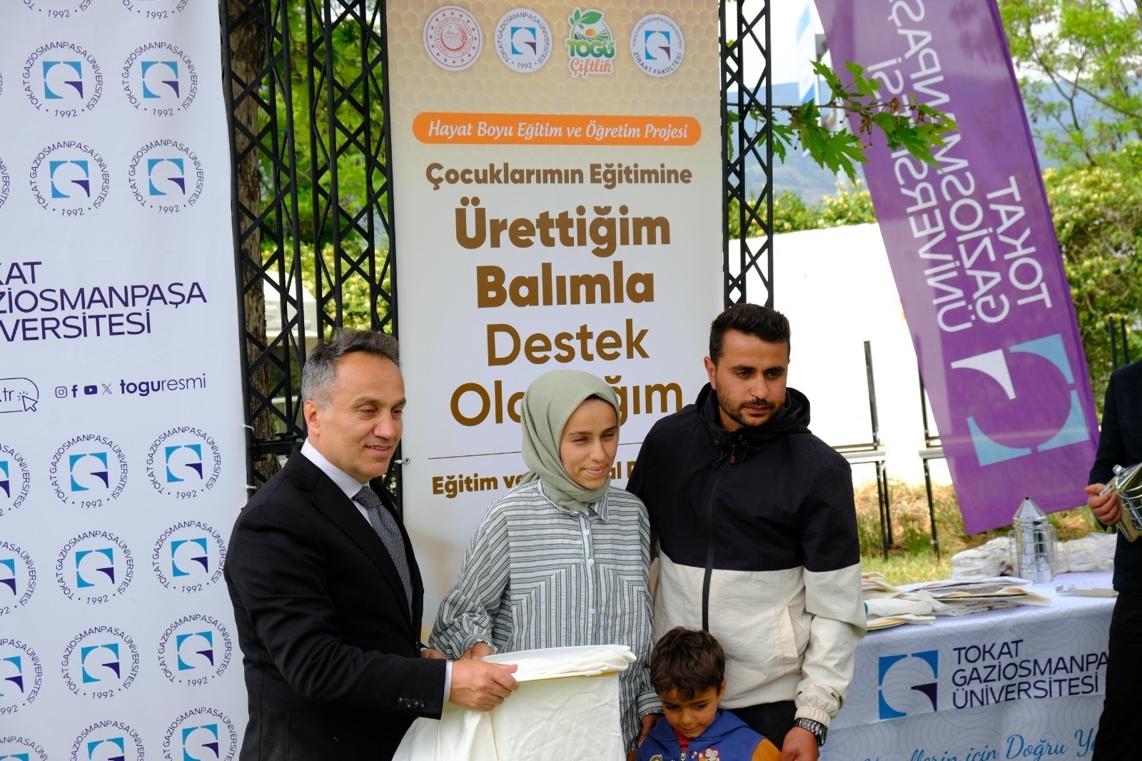Projenin içeriğine de değinen Rektörümüz, özellikle Tokat’ın yüksek kesimlerinde bulunan Almus, Artova, Sulusaray, Yeşilyurt ve Çamlıbel ilçelerinde yaşayan, çocukları eğitim çağında olan kadın çiftçilerin hedeflendiğini belirtti. Bu çerçevede, kadın üreticilere arı kovanları dağıtılarak bal üretimi yapmaları sağlanacak. Elde edilen ballar, TOGÜ Dükkan aracılığıyla satışa sunulacak ve gelir, çocukların eğitim masraflarına katkı olarak değerlendirilecek.