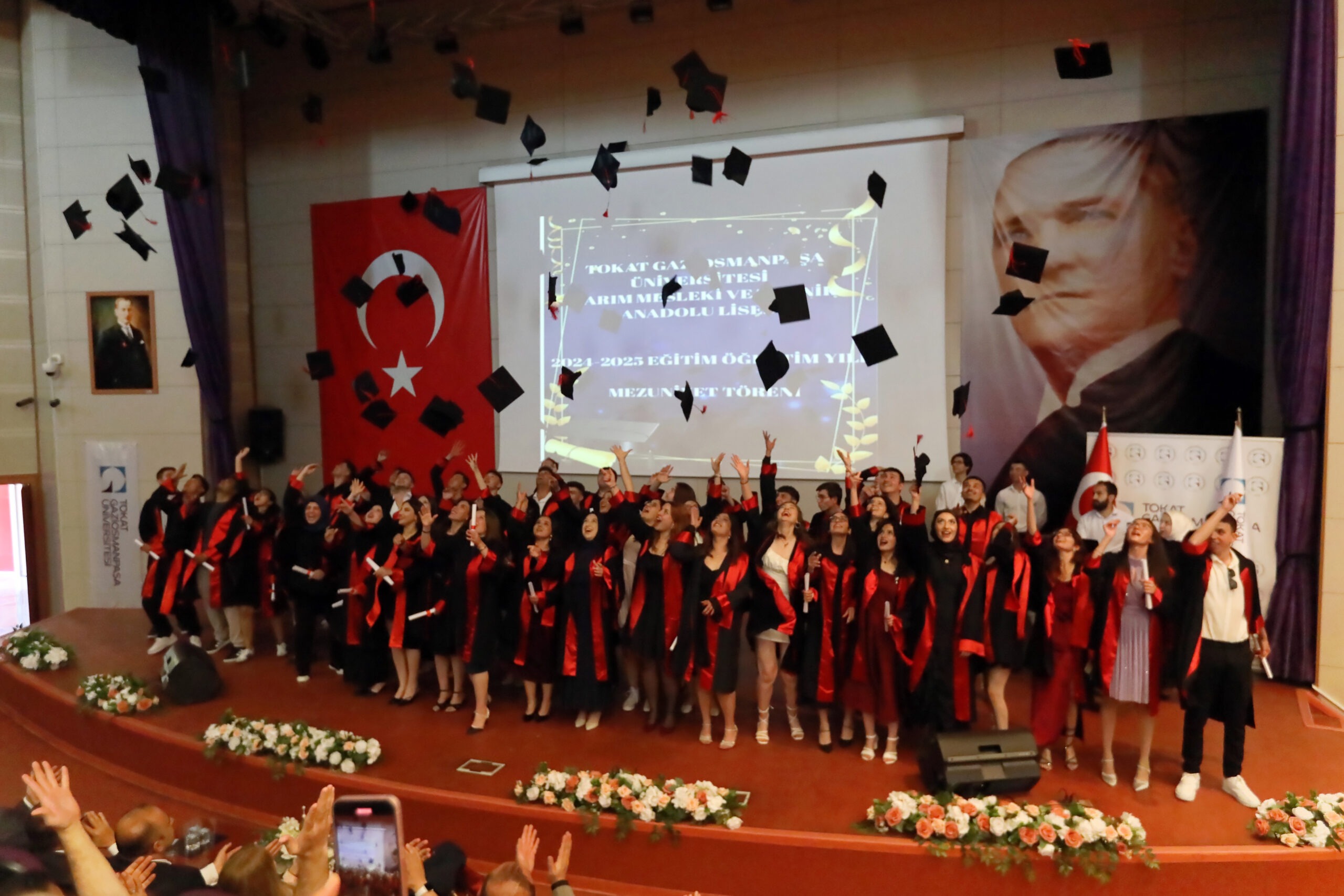 Törene, Rektörümüz Prof. Dr. Fatih Yılmaz, Tokat İl Milli Eğitim Müdürü Hüseyin Kır, Okul Müdürü Prof. Dr. Turgut Atay, Tokat İl Tarım ve Orman Müdürü Orhan Şahin, üniversitemiz dekanları, öğretim üyeleri, öğrenciler ve aileleri katıldı.