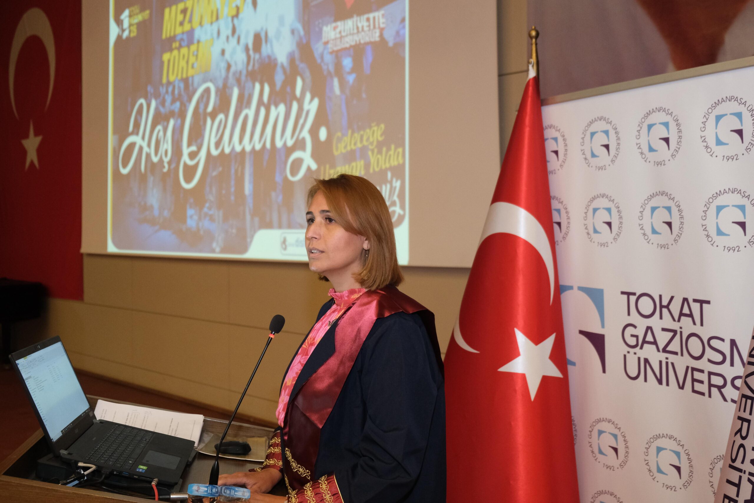 Rektör Yardımcısı Prof. Dr. Mücahit Eğri de konuşmasında mezun öğrencilere hitaben şu ifadeleri kullandı: “Bugün, Tokat Gaziosmanpaşa Üniversitesi ailesi olarak gururlu bir gün yaşıyoruz. Sizleri donanımlı bireyler olarak uğurlamanın mutluluğunu yaşıyoruz. Aldığınız bilimsel ve etik eğitimi, insan sağlığına katkı sağlamak için kullanacağınıza inanıyoruz. Yolunuz ve bahtınız açık olsun.”