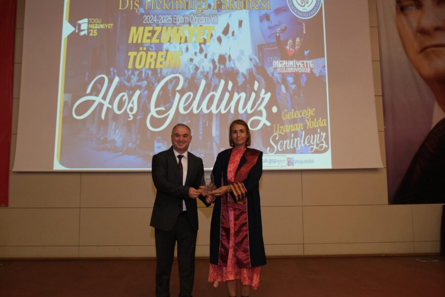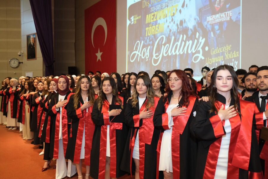 Dekan Prof. Dr. Hatice Balcı Yüce ise yaptığı konuşmada mezuniyetin sadece bir son değil, aynı zamanda yeni bir başlangıç olduğunu vurgulayarak şunları söyledi: “Bugün burada, yıllardır süren özverili bir eğitimin meyvesini almak için toplandık. Sevgili mezunlarımız, sizleri bilgiyle, etik değerlerle ve mesleki sorumluluk bilinciyle donattık. Yolunuz açık, vicdanınız rehberiniz olsun. Diş hekimliği mesleğini layıkıyla icra edeceğinize inancımız tam. Hepinize meslek hayatınızda başarılar ve mutluluklar diliyorum.”