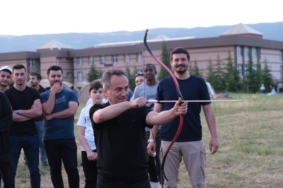 Etkinlikte kısa bir konuşma yapan Rektörümüz Prof. Dr. Fatih Yılmaz, öğrenci topluluklarının bu tür faaliyetlerine büyük önem verdiklerini vurgulayarak, “Gençlerimizin sosyal, kültürel ve sportif faaliyetlerde aktif olmalarını her zaman destekliyoruz. Taşlıçiftlik Yerleşkemizin ‘Spor Dostu Kampüs’ unvanı da bu anlayışımızın bir yansımasıdır. Kamp etkinliği, öğrencilerimizin doğayla bağ kurmaları, birlikte vakit geçirmeleri ve arkadaşlık ilişkilerini güçlendirmeleri açısından çok kıymetli. Bu tür etkinlikler, üniversite yaşamını sadece akademik değil, aynı zamanda sosyal gelişim açısından da zenginleştiriyor. Üniversite olarak gençlerimizin her yönüyle gelişmesini önemsiyoruz” dedi.