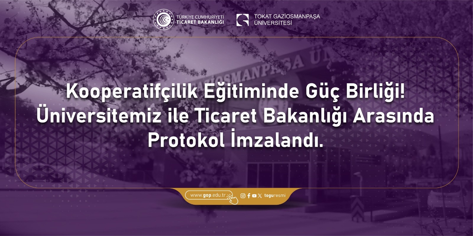 Söz konusu protokol ile üniversitemiz, kooperatifçilik konusunda yetkilendirilmiş eğitim kurumları arasındaki yerini aldı. Bu kapsamda, üniversitemiz bünyesinde verilecek eğitimlerle, kooperatifçilik kültürünün yaygınlaştırılması, kooperatiflerin kurumsal kapasitelerinin geliştirilmesi ve kooperatifçilik konusunda bilinçli girişimcilerin yetiştirilmesi hedefleniyor.