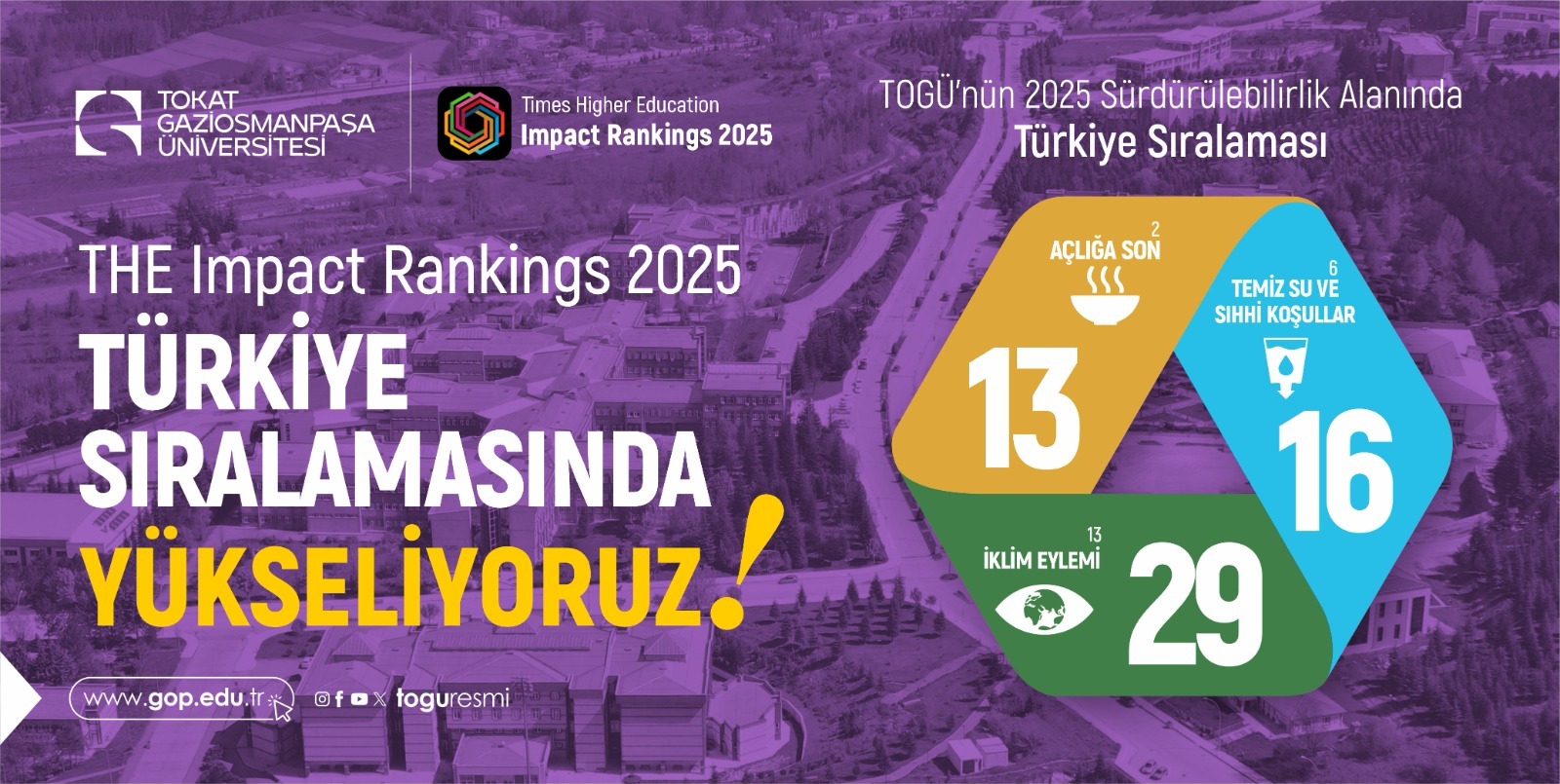 Times Higher Education Impact Rankings 2025 sonuçlarına ilişkin değerlendirmede bulunan Rektörümüz Prof. Dr. Fatih Yılmaz, şu ifadeleri kullandı: “Üniversitemizin ‘Açlığa Son’, ‘Temiz Su ve Sıhhi Koşullar’ ile ‘İklim Eylemi’ gibi küresel sürdürülebilirlik alanlarında Türkiye sıralamasında üst basamaklara yükselmiş olması bizler için büyük bir gurur kaynağıdır. Bu başarı, sadece sayısal bir veri değil; aynı zamanda üniversitemizin topluma, çevreye ve geleceğe karşı sorumluluklarını kararlılıkla yerine getirdiğinin somut bir göstergesidir. TOGÜ ailesi olarak, akademik çalışmalarımızı yalnızca bilim üretme çerçevesinde değil, aynı zamanda insanlığa ve doğaya katkı sağlayacak bir anlayışla yürütüyoruz. Bu vizyon doğrultusunda çalışan tüm akademik ve idari personelimize, öğrencilerimize ve paydaşlarımıza teşekkür ediyorum. Sürdürülebilir kalkınma hedeflerine katkı sunan üniversiteler arasında daha güçlü bir konuma gelme yolunda çalışmalarımıza aynı azimle devam edeceğiz.”