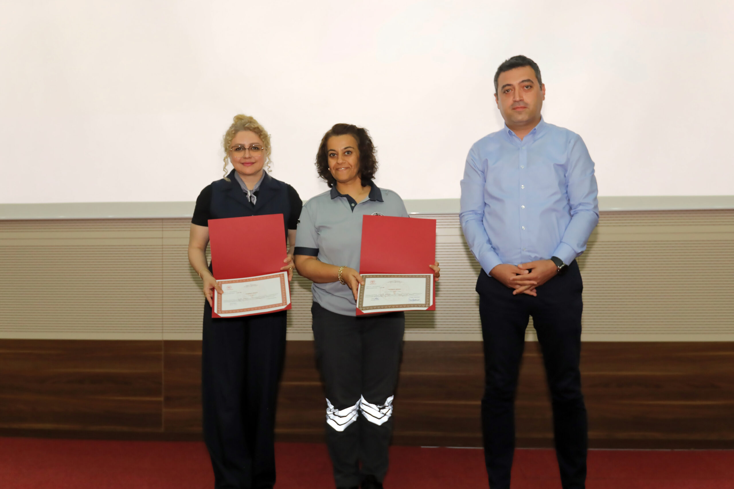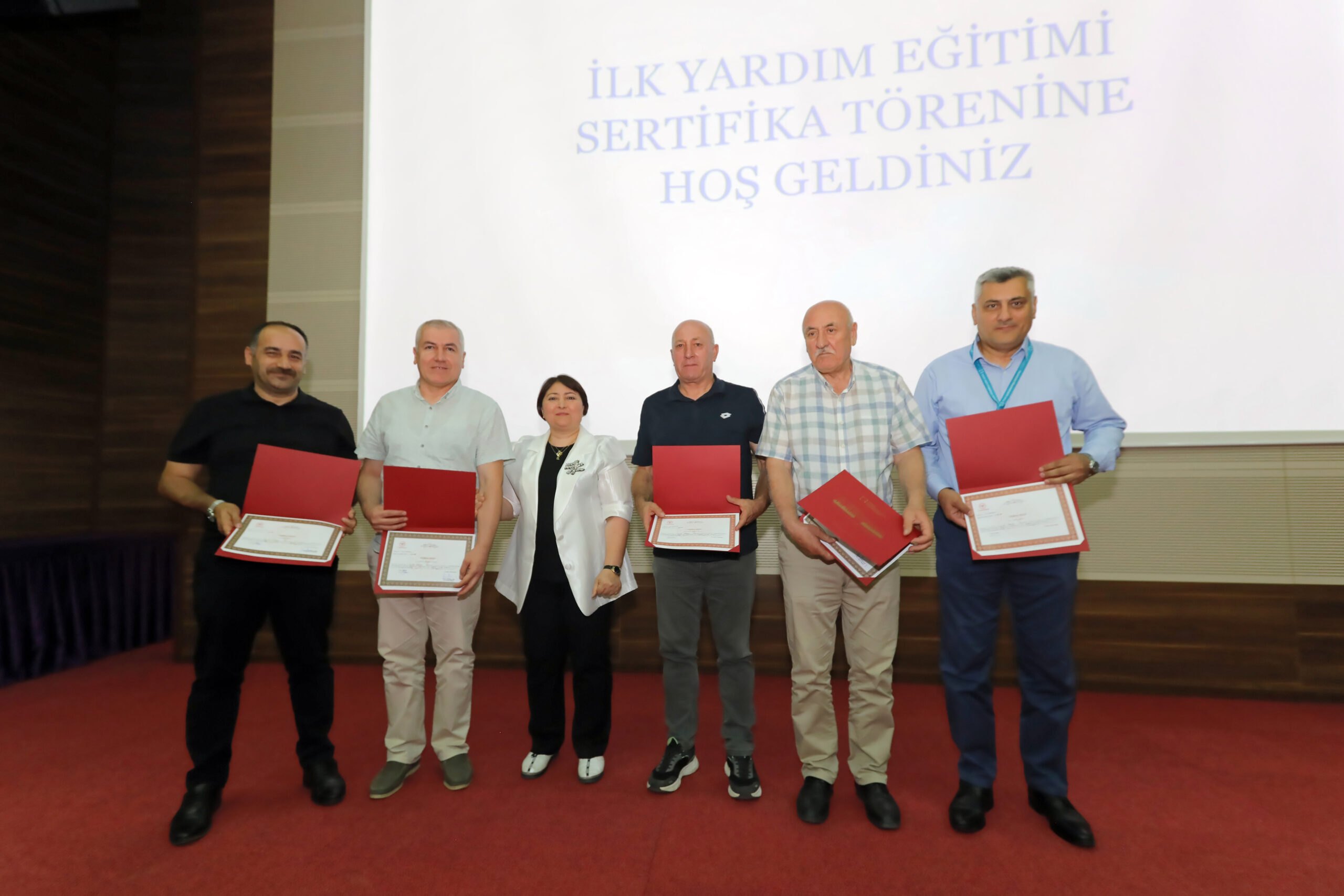Program kapsamında, ilk yardım sertifika eğitimini başarıyla tamamlayan 102 personele sertifikaları takdim edildi. Sertifikalar, Rektör Yardımcısı Prof. Dr. Rasim Koçyiğit, Dekanlarımız Prof. Dr. Funda Demirtürk, Prof. Dr. Bilge Hilal Çadırcı, Dekan Yardımcıları, Hemşirelik Bölüm Başkanı, İlkyardım Eğitim Merkezi Koordinatörü ve eğitimci kadro tarafından verildi.