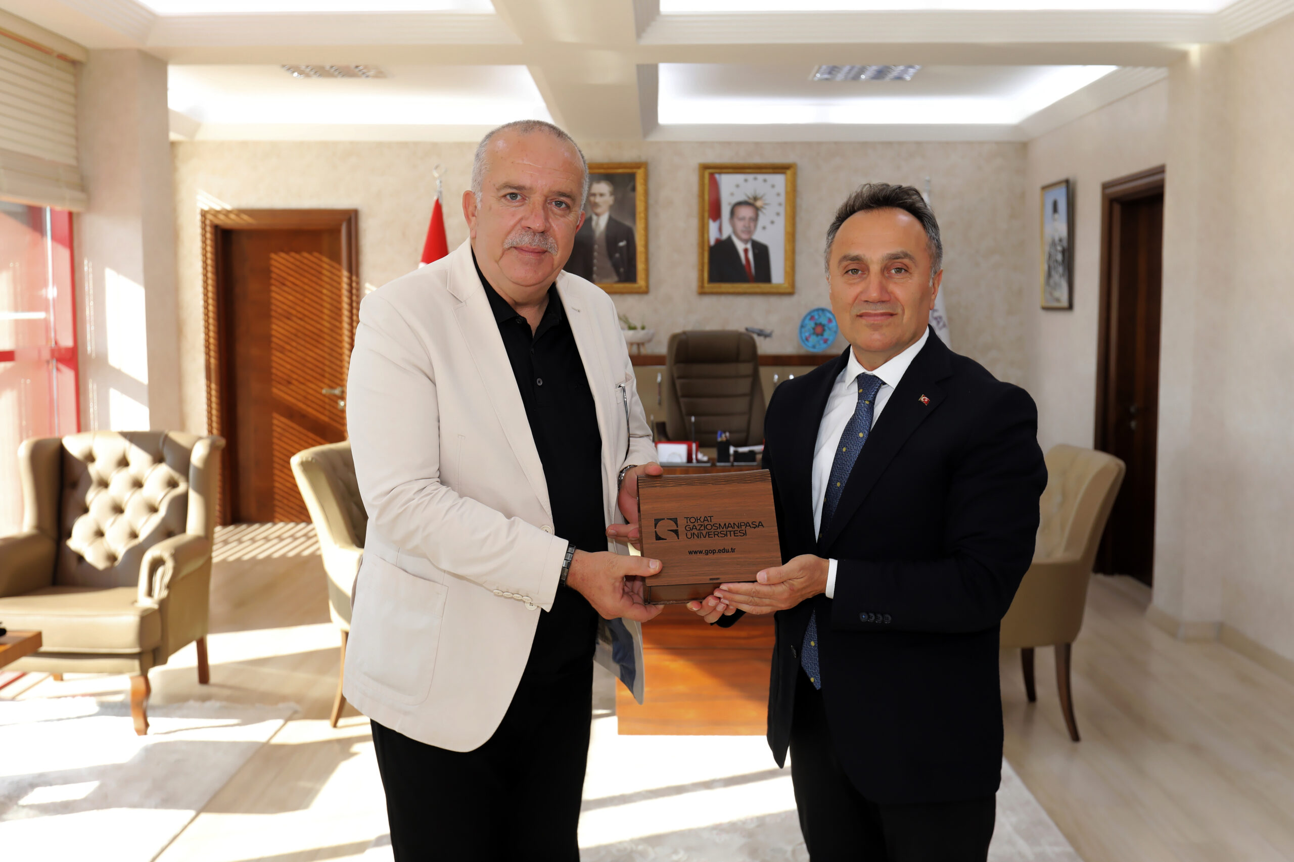 Tekke Mûsikîsi Konseri kapsamında Tokat’a gelen Amasya Üniversitesi Rektörü Prof. Dr. Ahmet Hakkı Turabi, Rektörümüz Prof. Dr. Fatih Yılmaz’ı makamında ziyaret etti.
