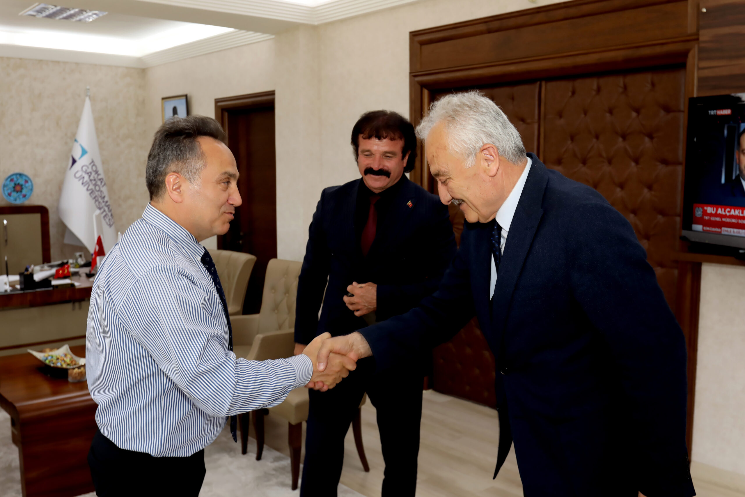 Tokat Belediye Plevne Spor Yönetim Kurulu Başkanı Ahmet Akcan, Futbol Şube Sorumlusu Mehmet Menderes Önkuzu, Tokat Gençlik ve Spor İl Müdürü Haşim Eğer, Tokat Belediyesi Gençlik ve Spor Müdürü Cengiz Teker ve Takım Antrenörü Namık Altunsoy, Rektörümüz Prof. Dr. Fatih Yılmaz’ı makamında ziyaret etti.