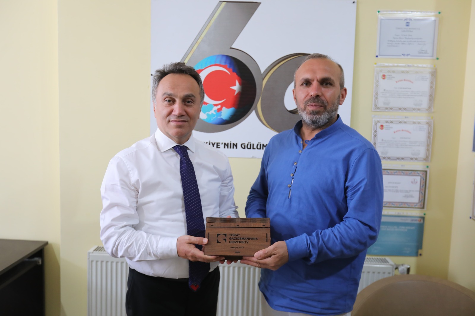 Eğitim Bir Sen Tokat 1 No ve 2 Nolu Şube Başkanları Şaban Ceylan ve Prof. Dr. Mehmet Demirtaş’ı ziyaret eden Rektörümüz sendikal faaliyetler hakkında bilgi aldı. Akabinde Kanal 60 TV sahibi Hüseyin Kömür ile bir araya gelen Rektörümüz Prof. Dr. Fatih Yılmaz, medya sektörünün yerel ve ulusal ölçekteki gelişmeleri üzerine görüş alışverişinde bulundu.