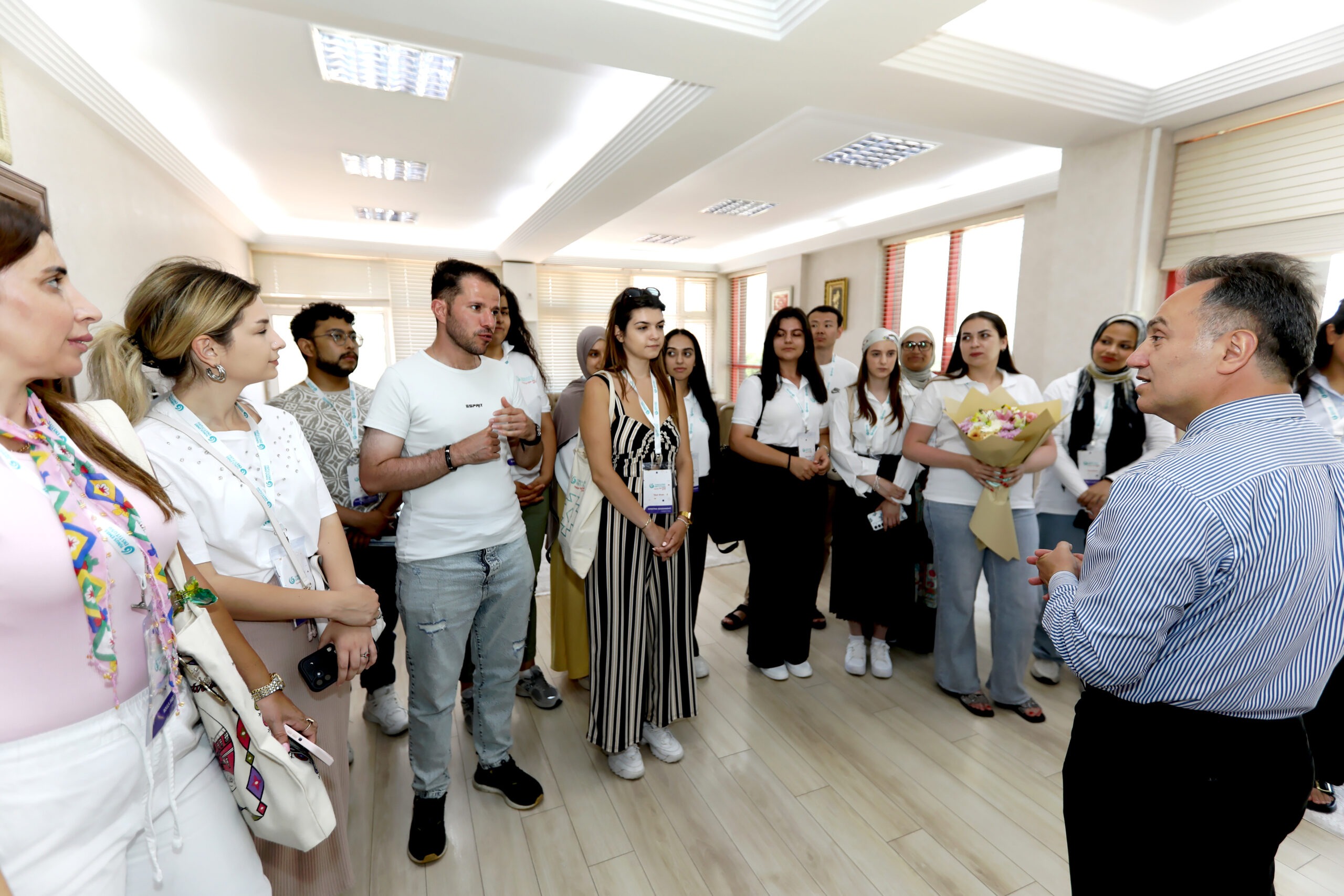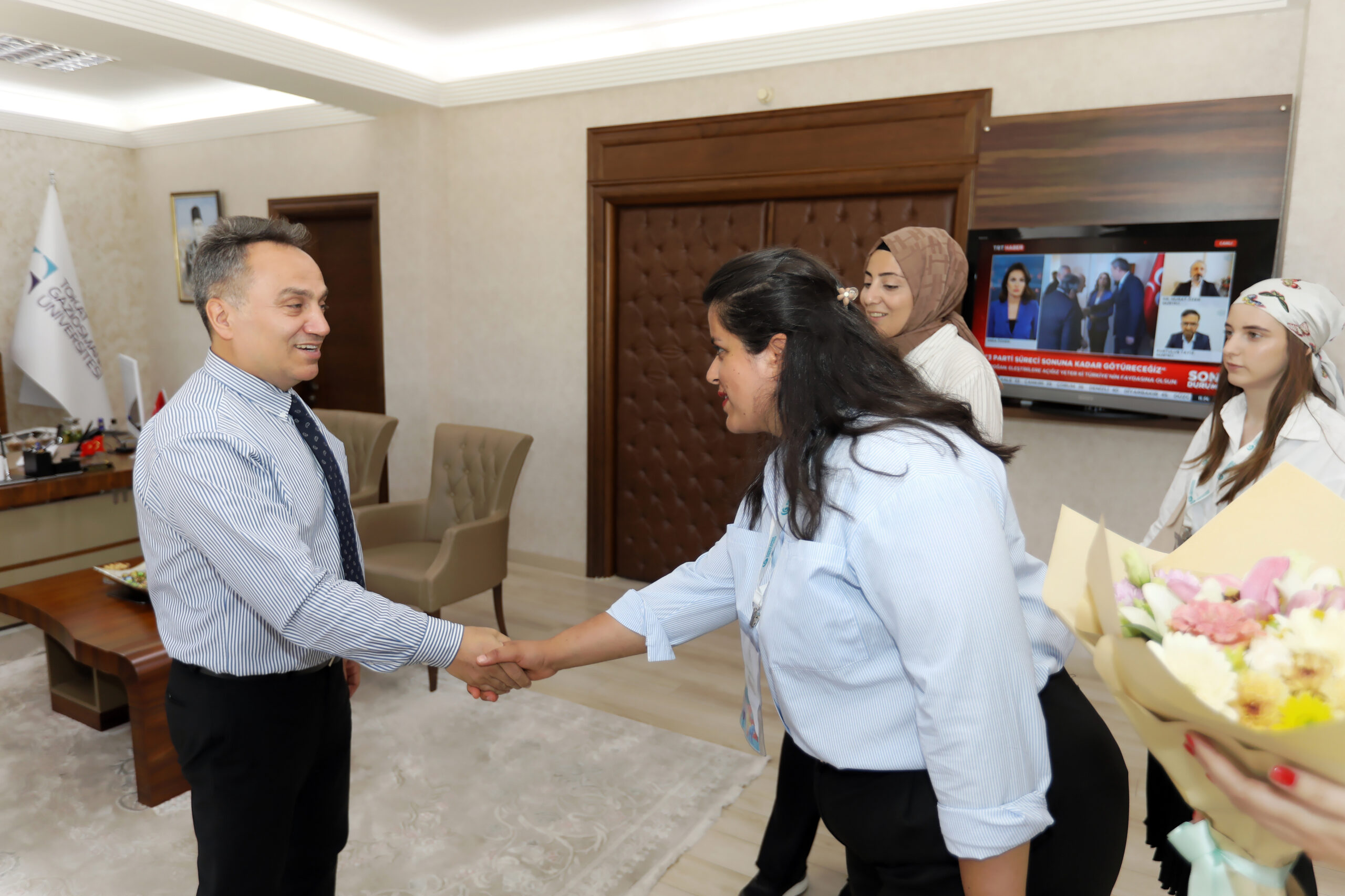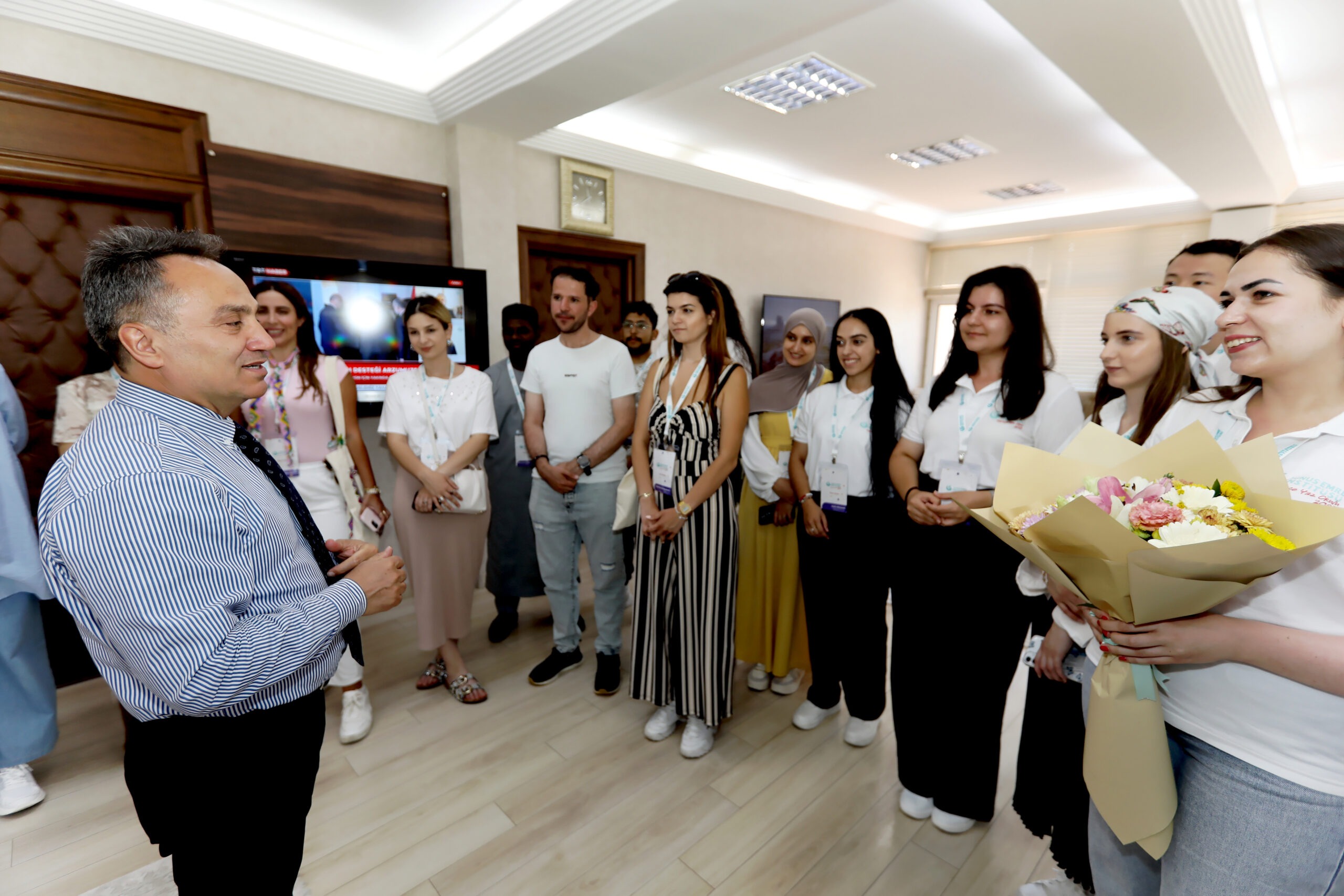 Üniversitemiz Türkçe Öğretim Uygulama ve Araştırma Merkezi (TÖMER) tarafından Yunus Emre Enstitüsü iş birliğiyle düzenlenen Yaz Okulu kapsamında üniversitemizde eğitim alan 13 farklı ülkeden 19 öğrenci, Rektörümüz Prof. Dr. Fatih Yılmaz’ı makamında ziyaret etti.