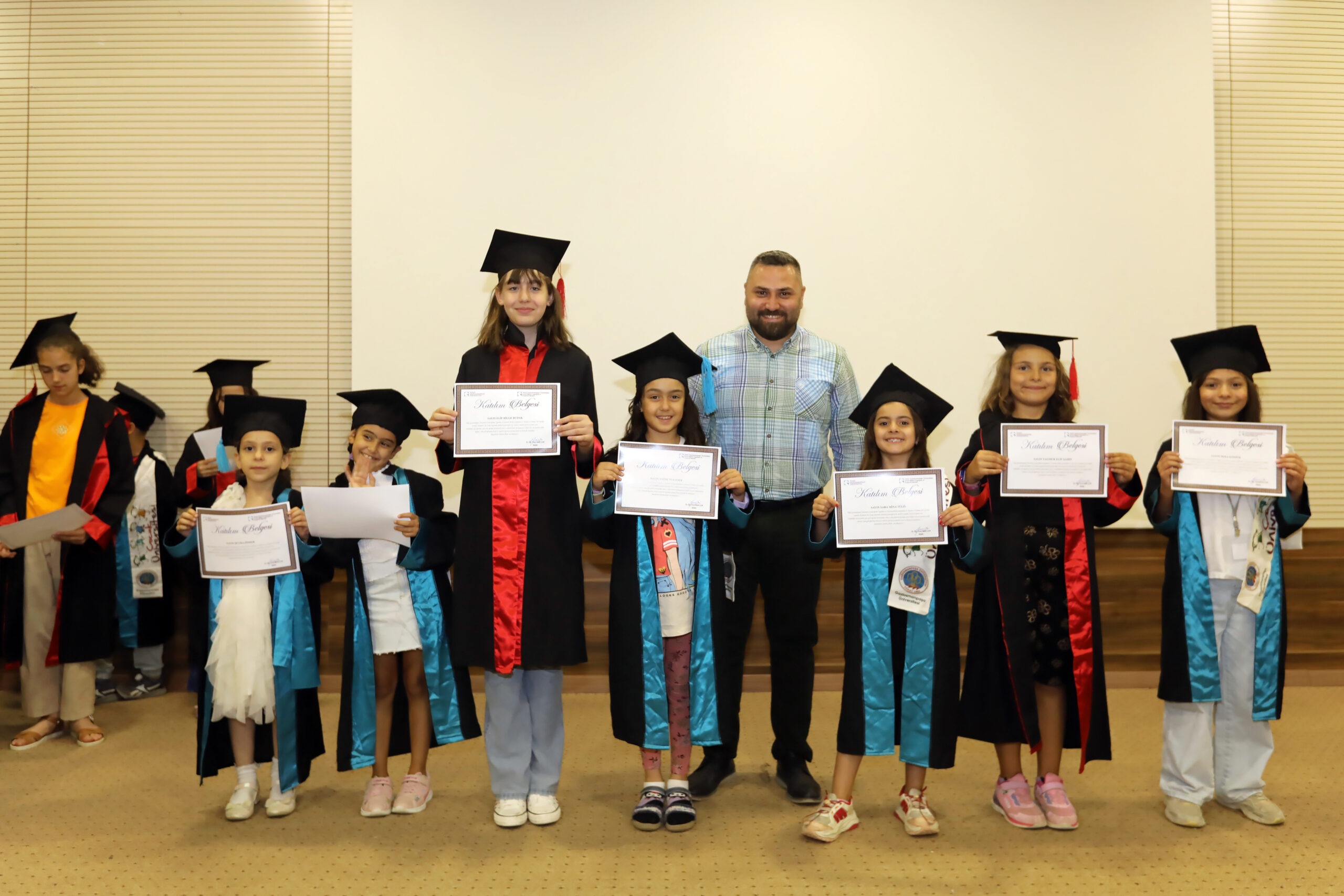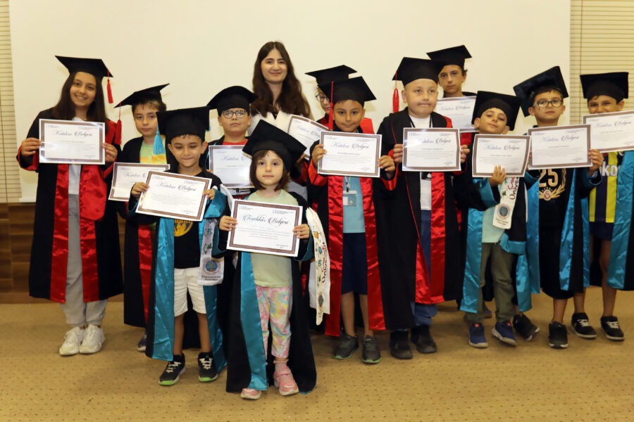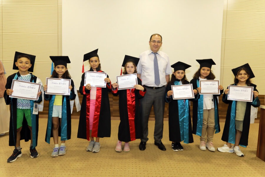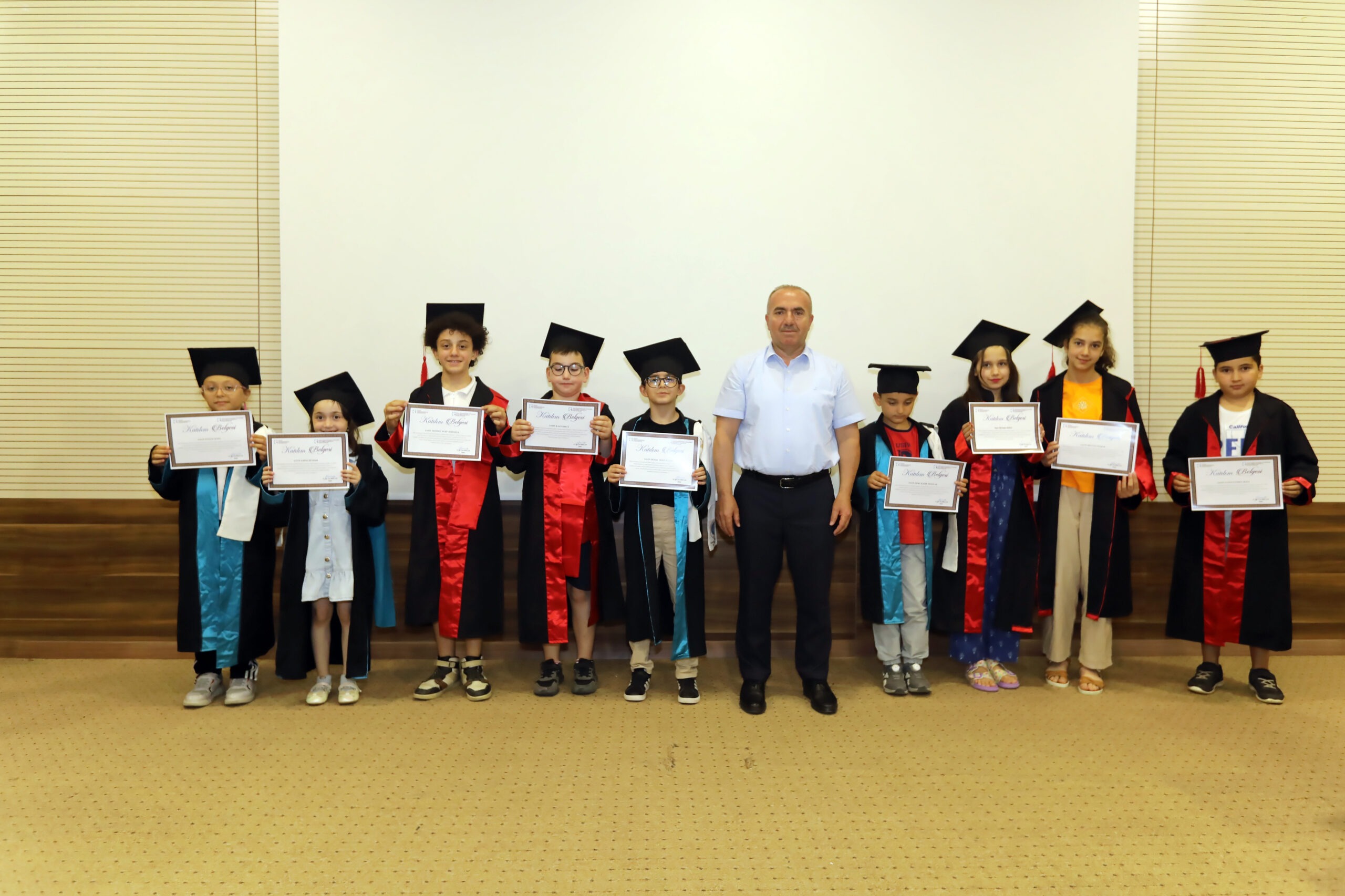 Kampın kapanışı ise, Üniversitemiz Mühendislik ve Mimarlık Fakültesi Şehit Ferhat Kaya Konferans Salonu’nda düzenlenen mezuniyet töreniyle gerçekleşti. Törene Rektör Yardımcılarımız Prof. Dr. Rasim Koçyiğit, Prof. Dr Yusuf Temür, Rektör danışmanlarımız Prof. Dr. Uğur Akın, Prof. Dr. Onur Saraçoğlu, Çocuk Eğitimi Araştırma ve Uygulama Merkezi Müdürü Dr. Öğr. Üyesi Betül Çam, akademik ve idari personelimiz ile öğrenciler ve aileleri yoğun ilgi gösterdi.