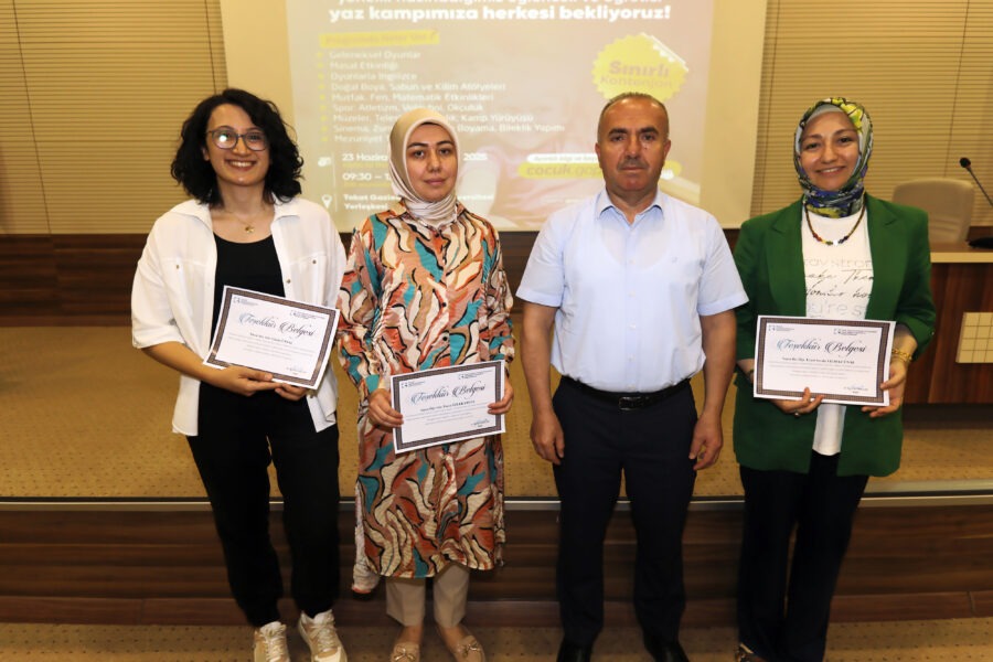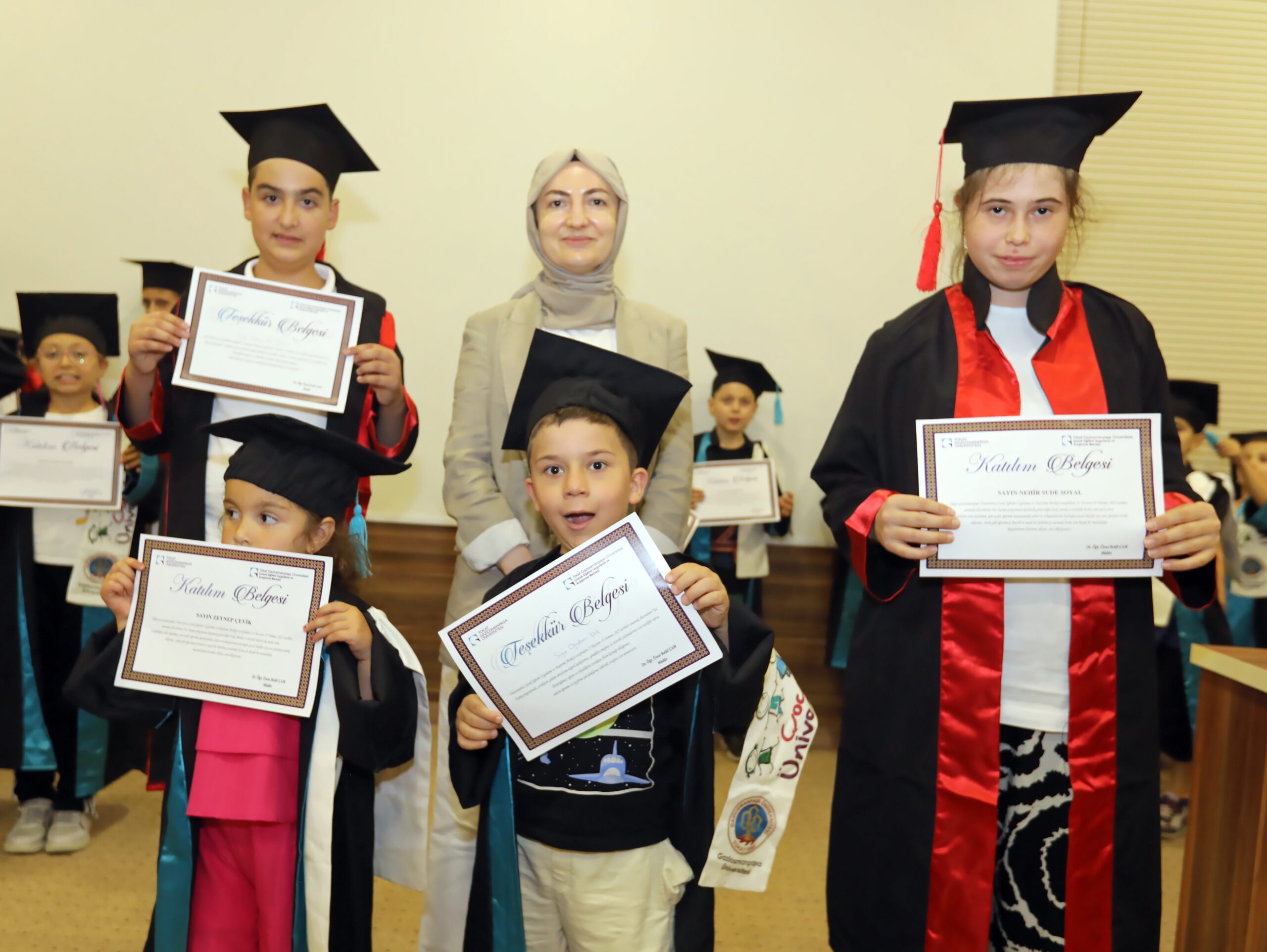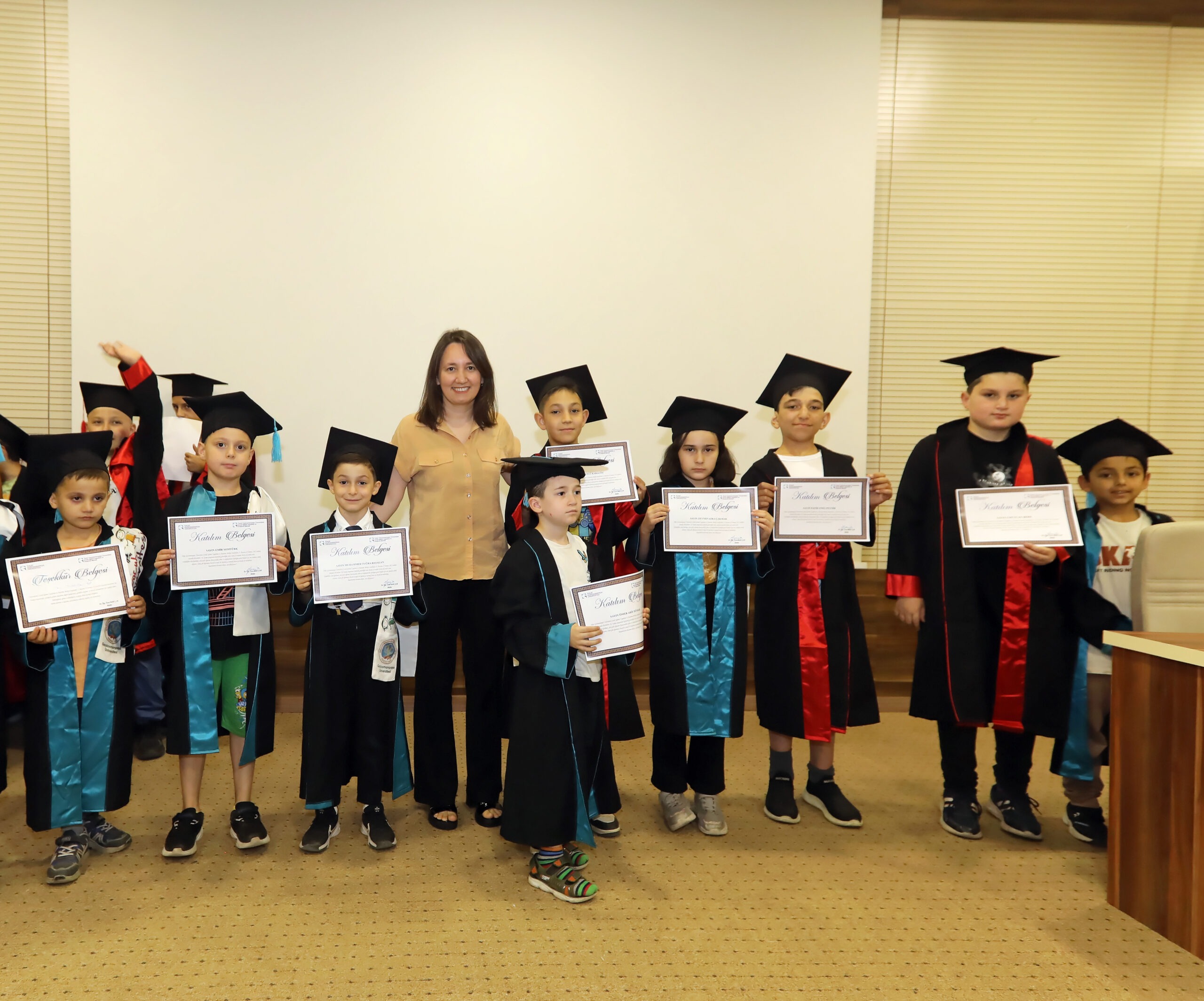 Kampın kapanışı ise, Üniversitemiz Mühendislik ve Mimarlık Fakültesi Şehit Ferhat Kaya Konferans Salonu’nda düzenlenen mezuniyet töreniyle gerçekleşti. Törene Rektör Yardımcılarımız Prof. Dr. Rasim Koçyiğit, Prof. Dr Yusuf Temür, Rektör danışmanlarımız Prof. Dr. Uğur Akın, Prof. Dr. Onur Saraçoğlu, Çocuk Eğitimi Araştırma ve Uygulama Merkezi Müdürü Dr. Öğr. Üyesi Betül Çam, akademik ve idari personelimiz ile öğrenciler ve aileleri yoğun ilgi gösterdi.