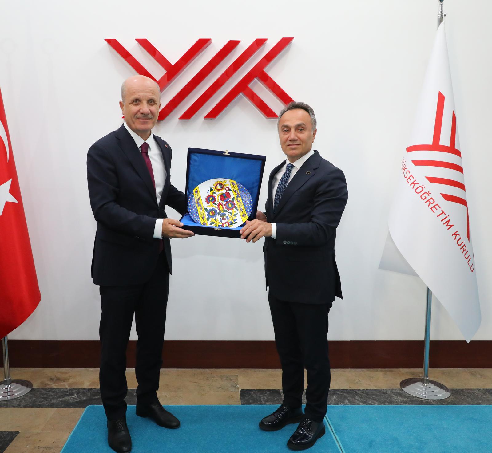Rektörümüz Prof. Dr. Fatih Yılmaz, Yükseköğretim Kurulu (YÖK) Başkanlığına yeniden atanan Sayın Prof. Dr. Erol Özvar’ı ziyaret ederek hayırlı olsun dileklerini iletti.
