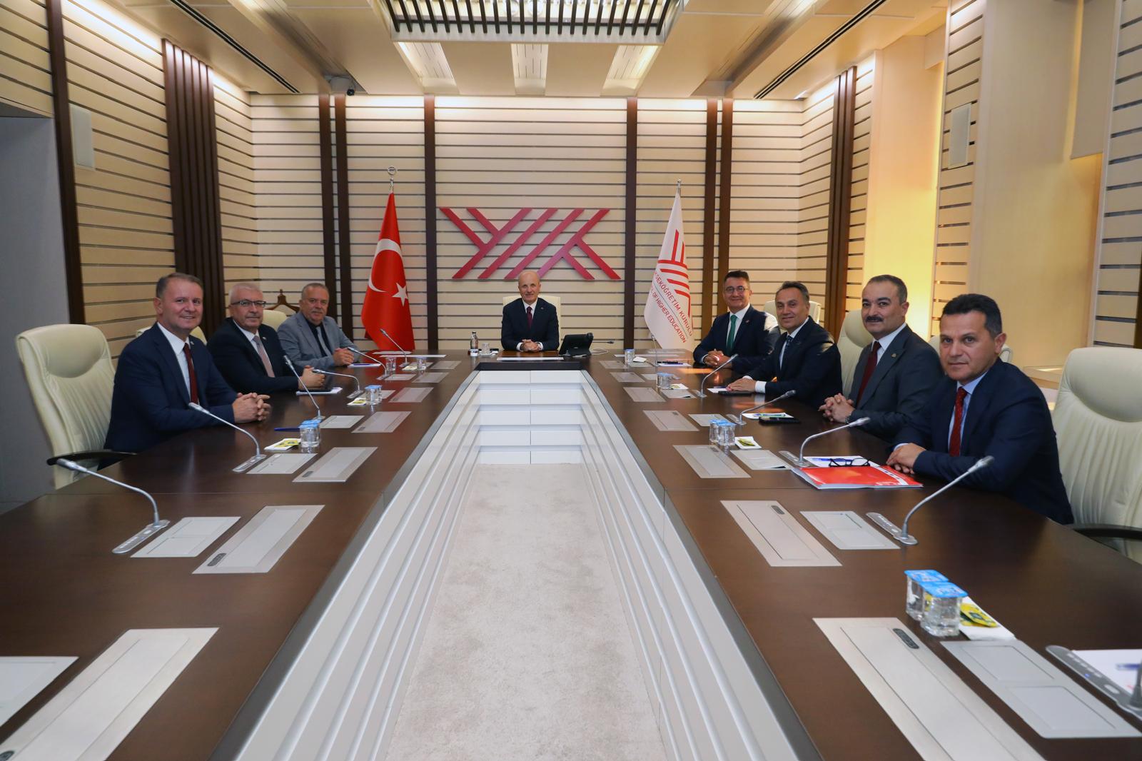 Rektörümüz Prof. Dr. Fatih Yılmaz, yükseköğretim kurumlarının ülkenin bilimsel, kültürel ve ekonomik gelişimine sunduğu katkılara dikkat çekerek, YÖK’ün bu süreçteki rolünün önemine vurgu yaptı. YÖK Başkanımız Prof. Dr. Erol Özvar da ziyaretten duyduğu memnuniyeti dile getirerek, üniversitelerin gelişimine katkı sağlayacak çalışmalara her zaman destek vereceklerini belirtti.