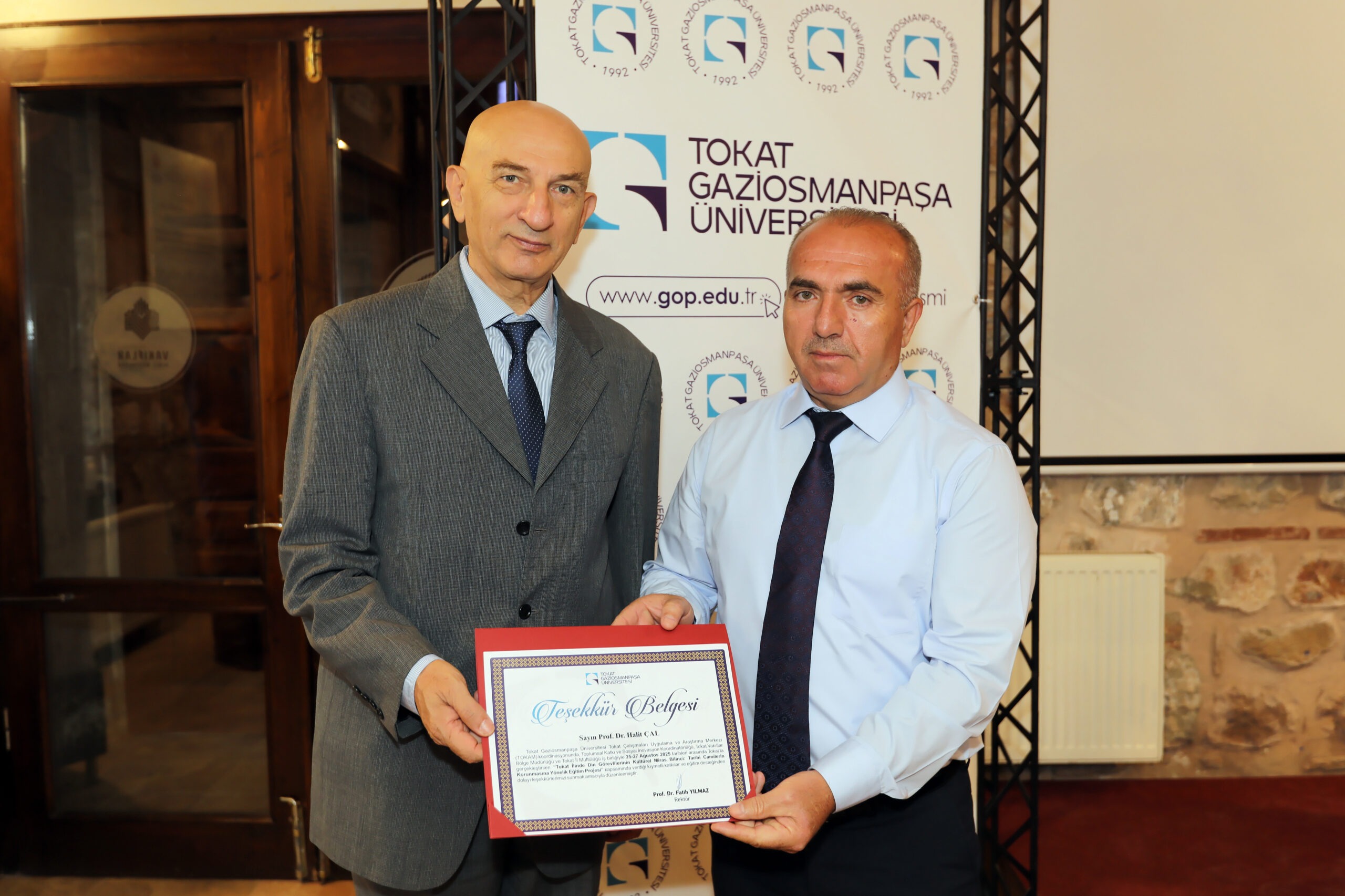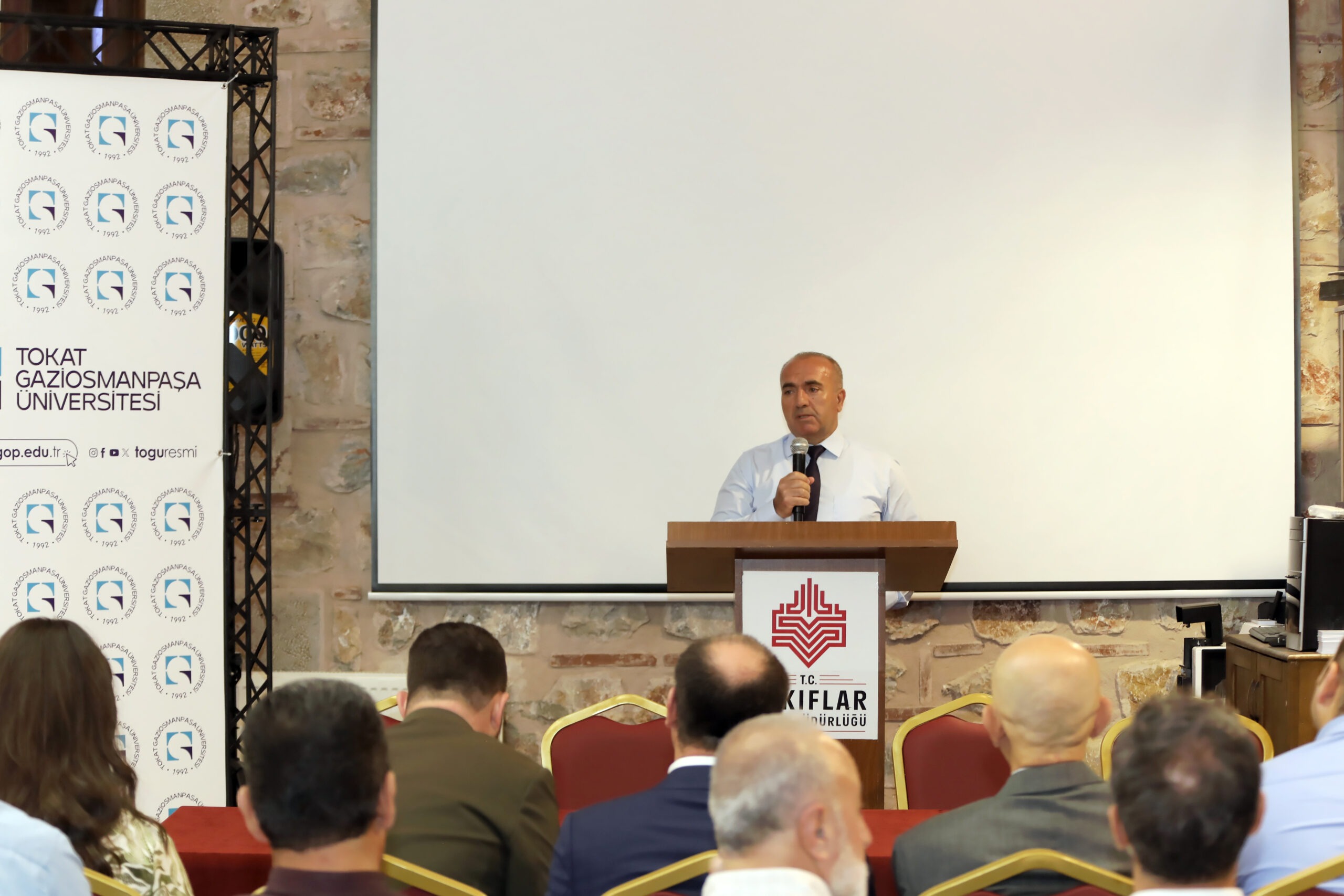 Tokat Vakıflar Bölge Müdürü Sebahattin Erdoğan yapmış olduğu konuşmada, projenin önemine değinerek kültürel ve tarihi mirasımızın korunmasında katkılarından dolayı Rektörümüze ve katkı sunan akademisyenlerimize teşekkürlerini iletti.