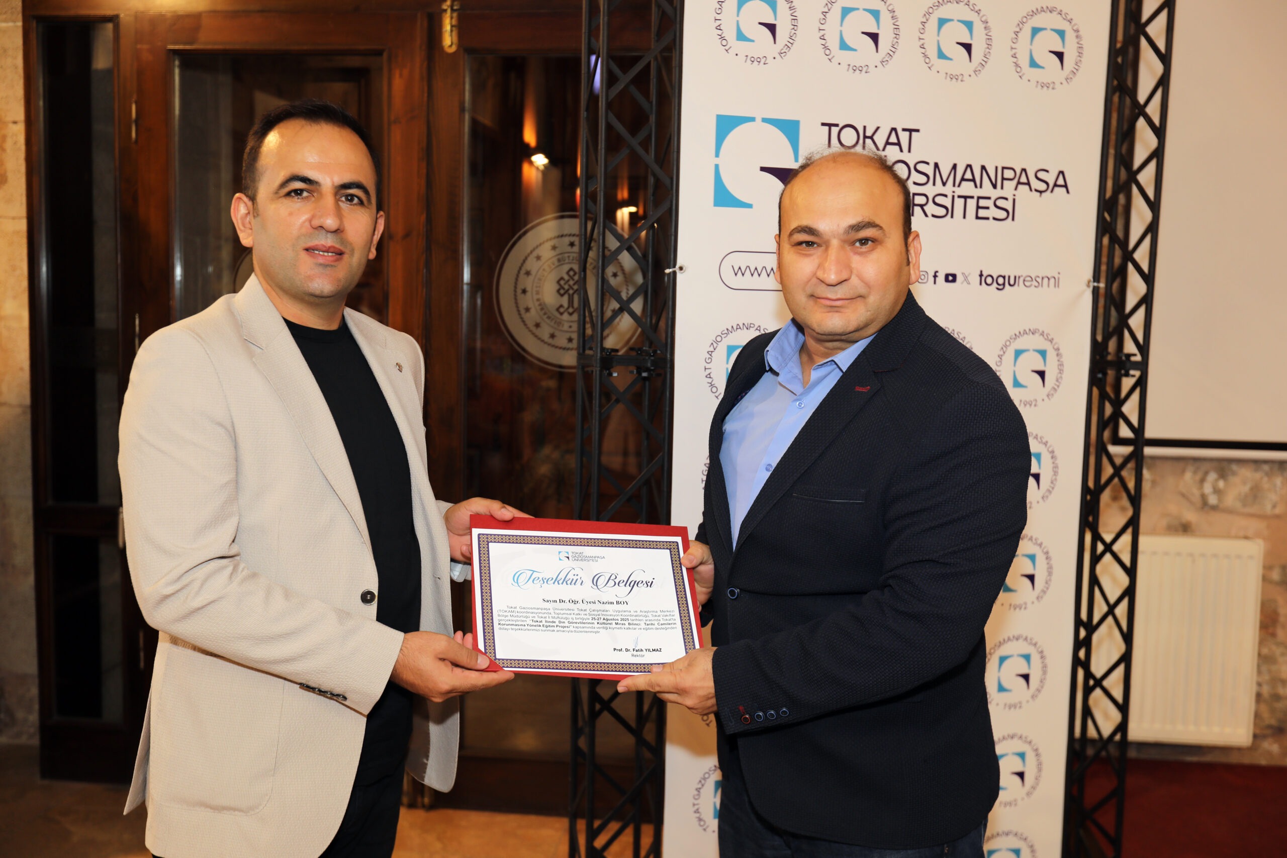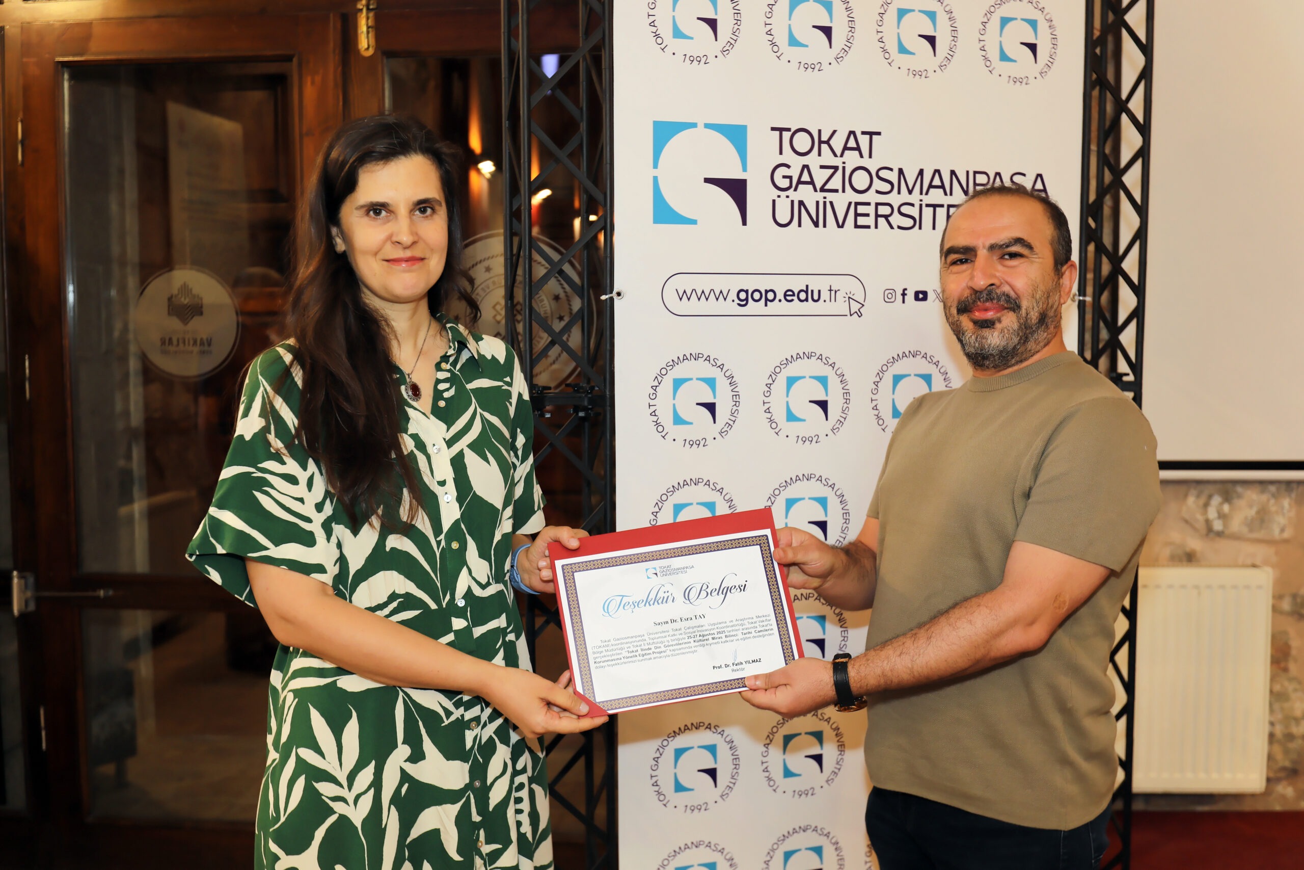 Üniversitemiz Tokat Çalışmaları Uygulama ve Araştırma Merkezi ile Toplumsal Katkı ve Sosyal İnovasyon Koordinatörlüğü tarafından, Tokat Vakıflar Bölge Müdürlüğü ve Tokat İl Müftülüğü iş birliğiyle düzenlenen “Tarihi Camilerin Korunmasına Yönelik Eğitim Projesi” Gülbahar Hatun İmareti’nde başladı.