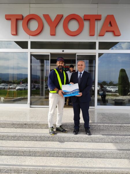 Son olarak Toyota Türkiye’ye, üniversitemize mesleki ve teknik eğitim kapsamında sağlanan araç ve parça hibeleri için teşekkür ziyaretinde bulunuldu. Kurum temsilcileri Fabrika Üretim Bölüm Sorumlusu Serkan Başak ve Lojistik Sorumlusu Serkan Akbıyık ile yapılan görüşmede yeni hibe destekleri, staj imkânlarının artırılması, eğiticilerin eğitimi, “sektör kampüste” faaliyetleri ve Toyota üretim sistemine yönelik uygulama laboratuvarlarının kurulması üzerine iş birliği yapılabilecek alanlar görüşüldü.