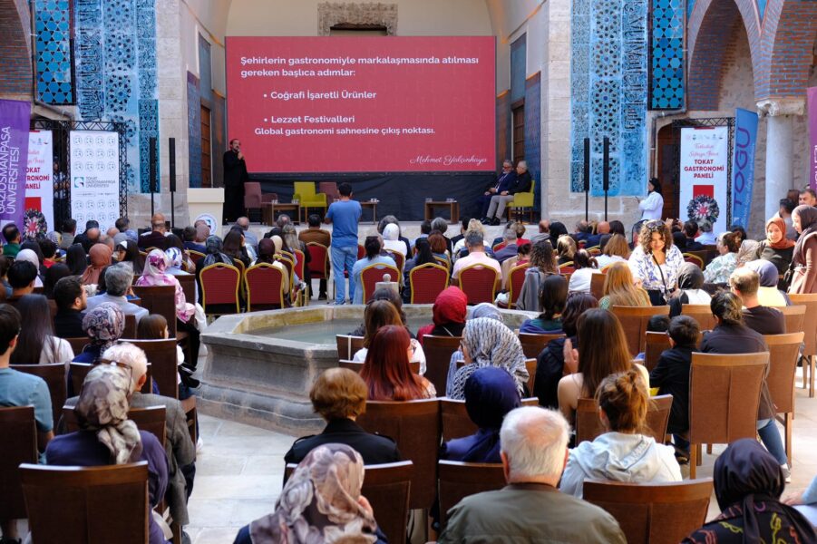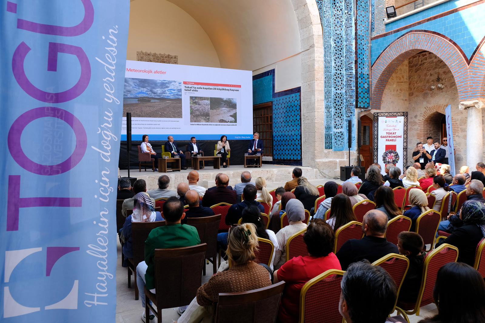 Tokat Valiliği, Tokat Belediyesi, Üniversitemiz, Tokat Ticaret ve Sanayi Odası, TUDER ve BAŞTEK iş birliğiyle “Tarladan Sofraya İnsan: Tokat Gastronomi Paneli” düzenlendi. TOGÜ Gökmedrese Bilim ve Kültür Merkezinde düzenlenen panele Tokat Vali Yardımcısı Tekin Erdemir, Rektörümüz Prof. Dr. Fatih Yılmaz, Rektör yardımcıları, Rektör danışmanları, kurum müdürleri, sivil toplum kuruluşlarının temsilcileri, akademik ve idari personelimiz ile öğrenciler ve vatandaşlar katıldı.