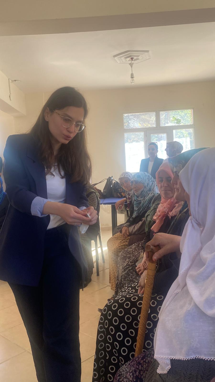 Eğitim sonunda katılımcı kadınlara erken tanı için yapılabilecek kişisel kontroller ve tarama merkezlerine başvuru yolları konusunda bilgilendirme yapıldı.