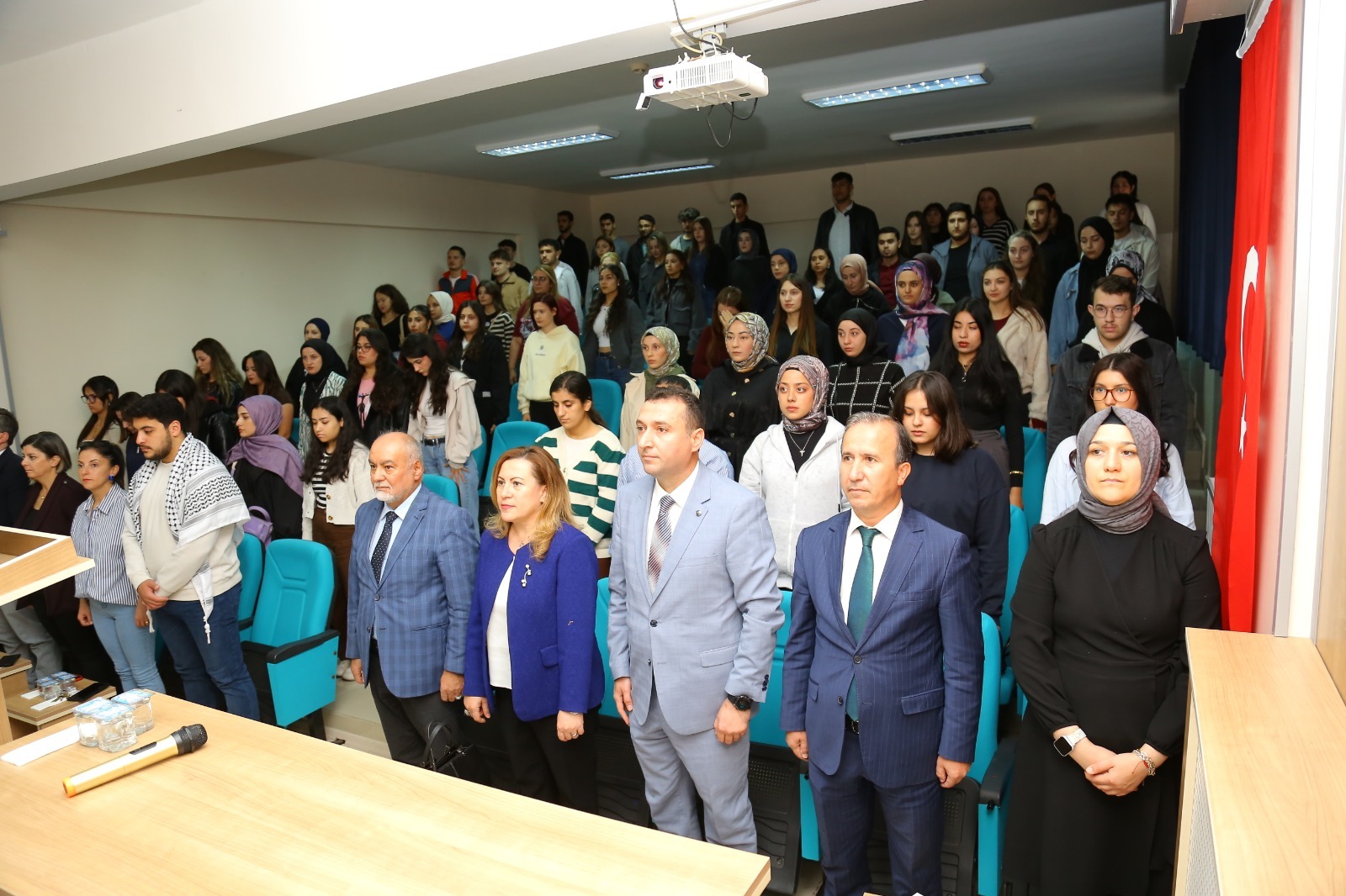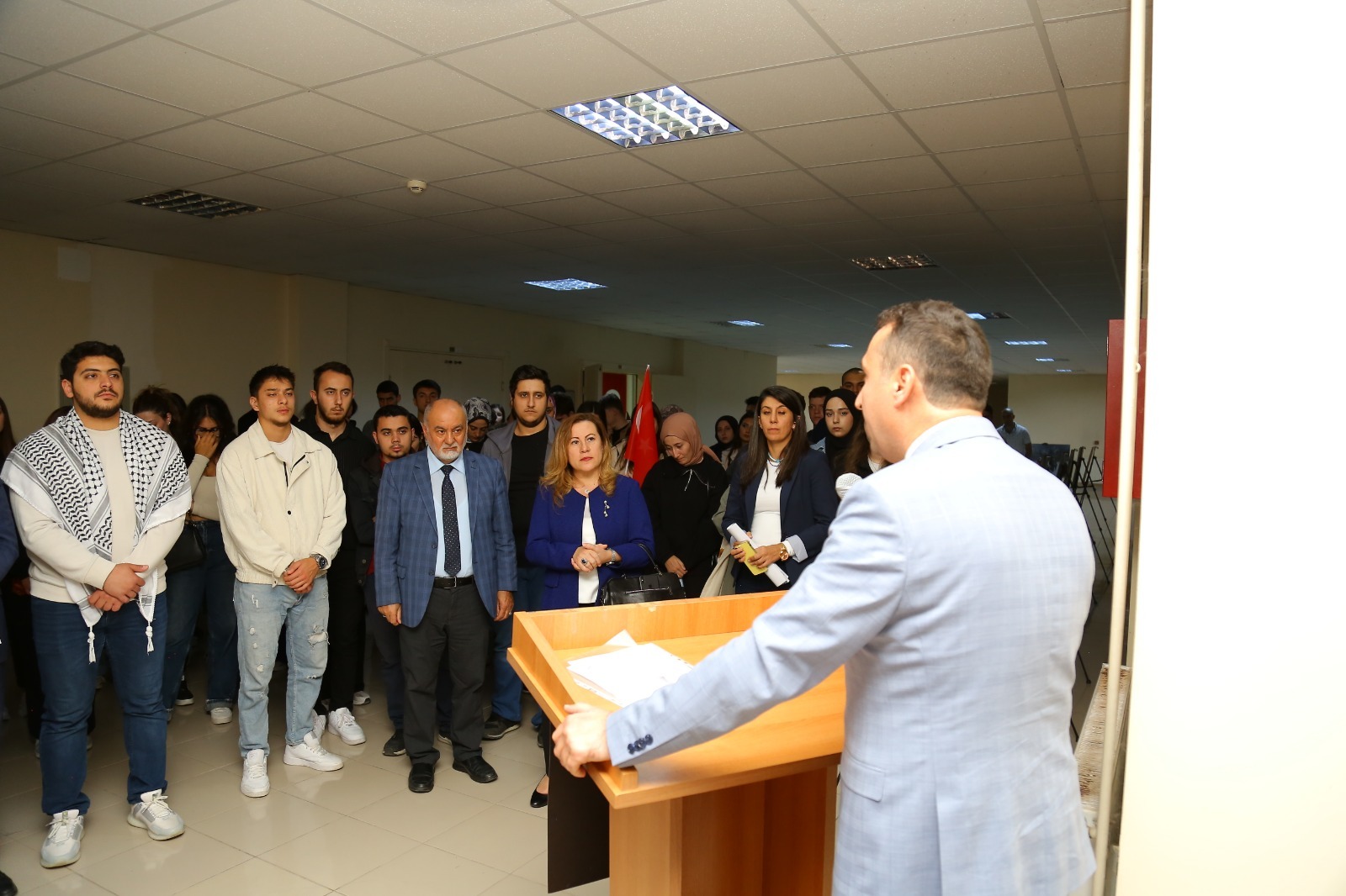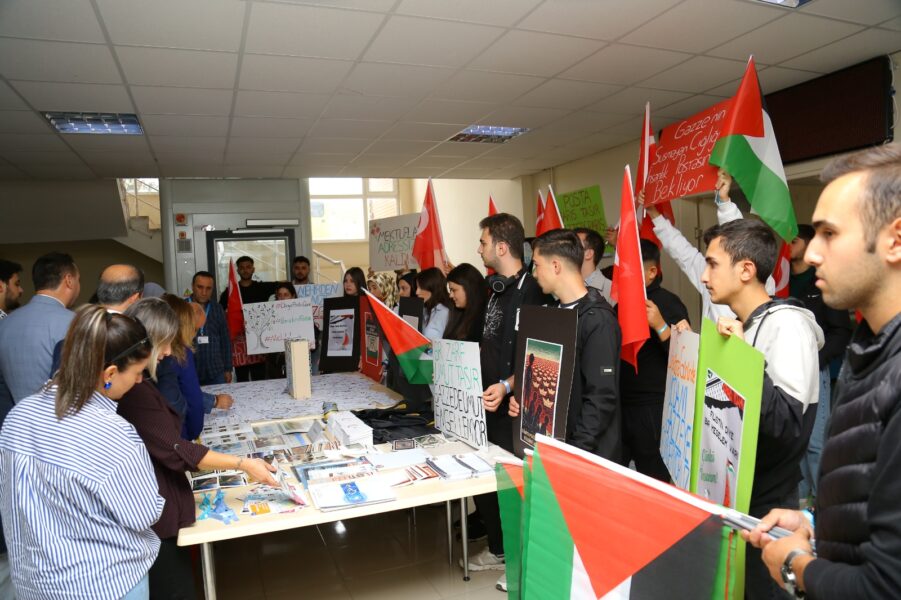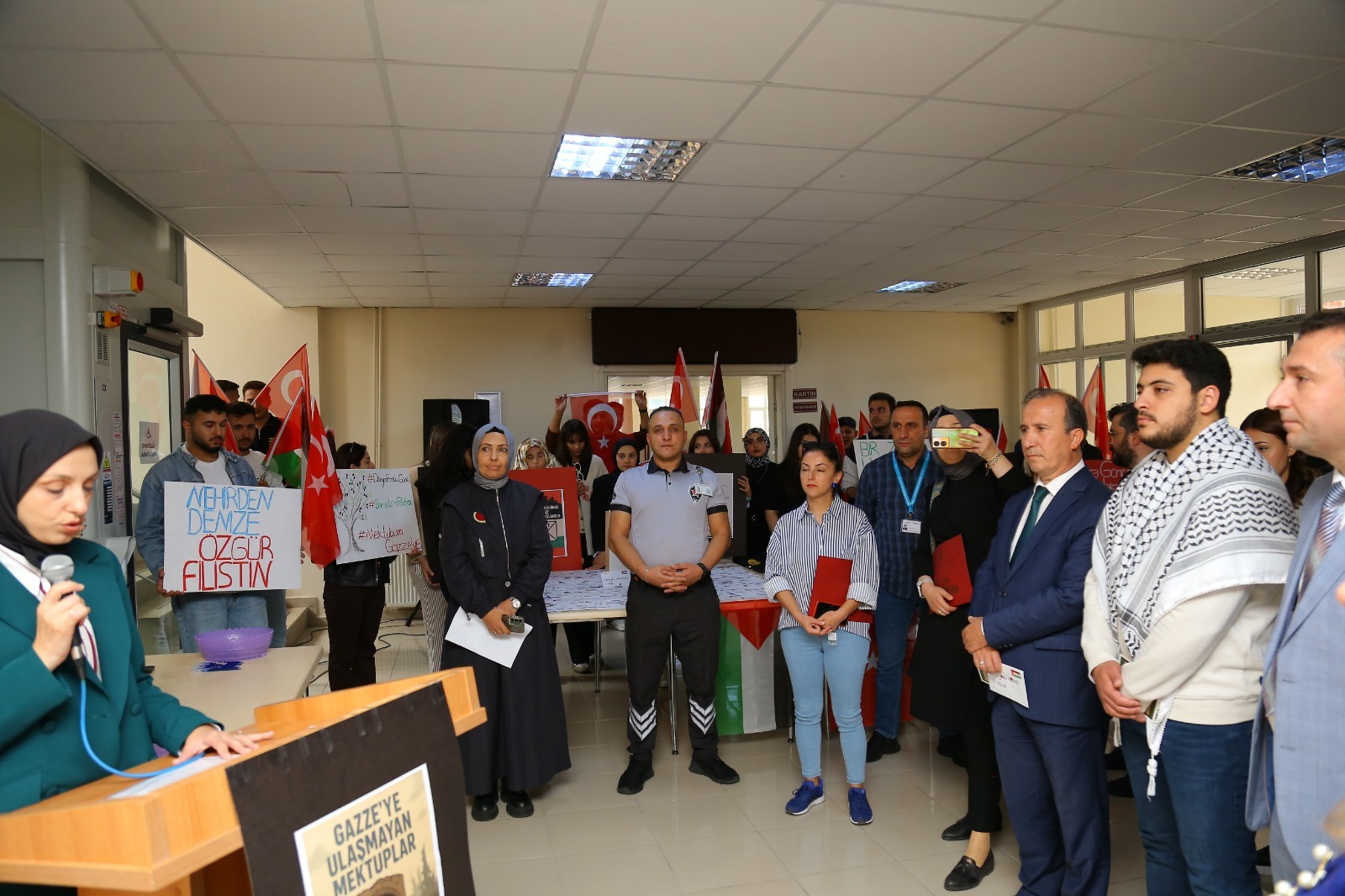 Öğr. Gör. Betül Dilfiruz’un sunumuyla gerçekleşen etkinliğin ikinci bölümünde bir dizi konuşmalar yapıldı. İlk olarak Üniversitemizde eğitim gören Filistinli öğrencilerden Ahmet ZIDAN bölgedeki yaşamanın zorluklarını ve Gazze halkının direnci ve umudunu içten bir konuşmayla paylaştı. Daha sonra Posta Hizmetleri Programı öğrencisi Hatice Etker, Gazzeli çocuklara ithafen yazılan duygusal mektubu okuyarak salondaki herkesi derinden etkiledi. Öğr. Gör. Bilge Sekizsu, Dünya Posta Günü’nün Gazze’deki mevcut durum karşısındaki anlam ve önemine vurgu yapan duygusal bir konuşma gerçekleştirdi. Programın sonunda, Almus Meslek Yüksekokulu Müdürü Dr. Öğr. Üyesi İlhami Karataş tarafından yapılan kapanış konuşmasında, Gazze’de yaşanan insanlık dışı olaylar karşısında sessiz kalmanın insan olma bilincinden uzaklaşmak anlamına geldiğini vurgulandı.