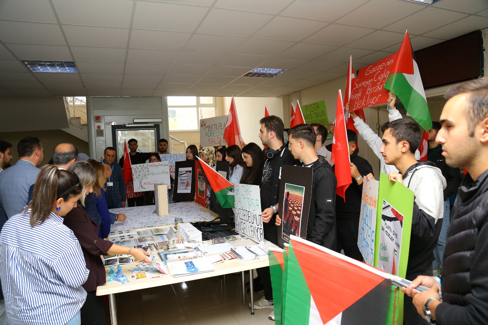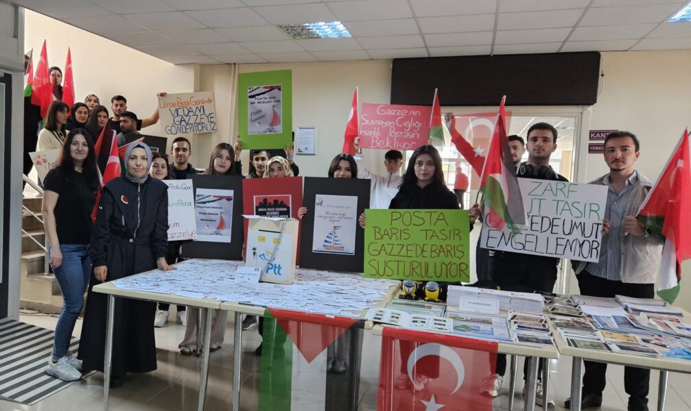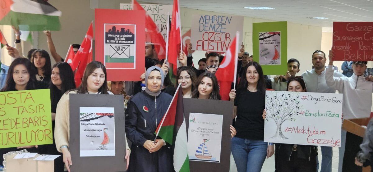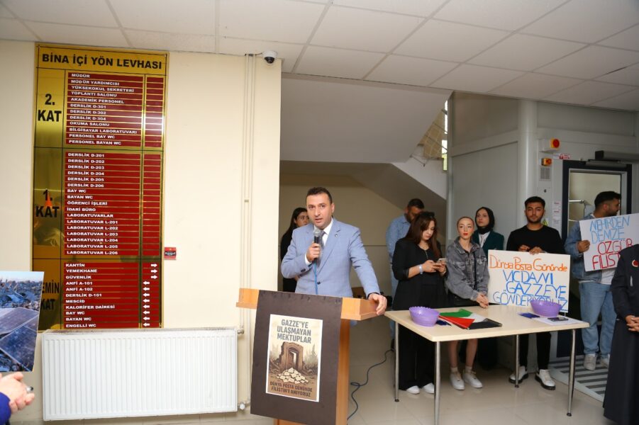 Sergi ziyaretinin ardından, Öğr. Gör. Bilge Sekizsu öncülüğünde Posta Hizmetleri Programı öğrencileri tarafından hazırlanan “Gazze’ye Ulaşmayan Mektuplar” temalı stantlar ziyaret edildi. Stantlarda, Gazze’de hayatını kaybeden çocukların isimlerinin yazılı olduğu boş zarflar yer aldı. Bu zarflar, onlara artık asla ulaşamayacak mektupları temsil ederken, iletişimin kesintiye uğramasını simgeleyen zincirlenmiş posta kutusu önünde anlamlı bir anıt oluşturdu. Etkinlik kapsamında Tokat PTT Başmüdürlüğü tarafından hazırlanan özel zarflar ve kartpostallar da günün anlamına ithafen katılımcılara hediye edildi.