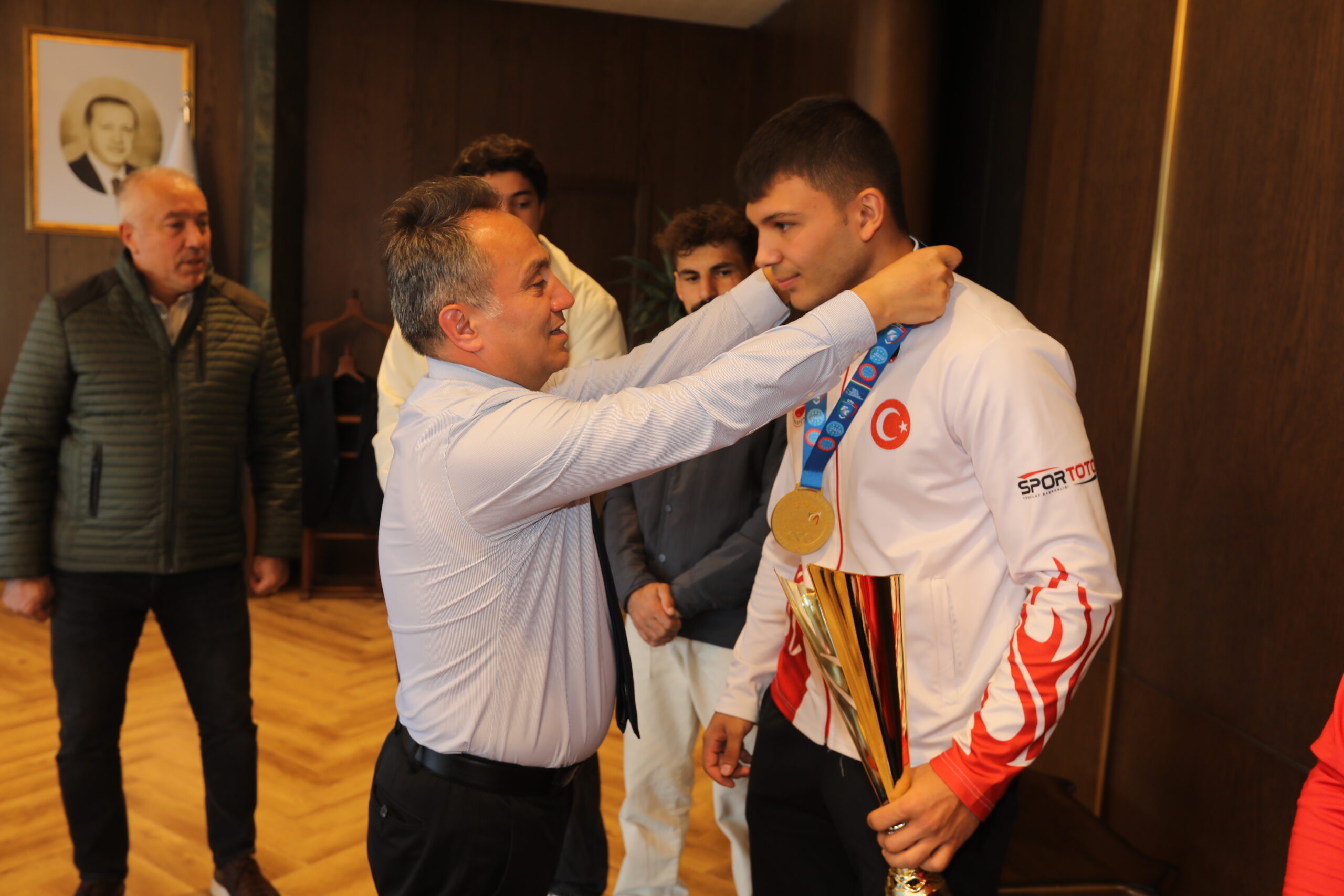 Ziyarete, Spor Bilimleri Fakültesi Dekanı Prof. Dr. Yavuz Selim Ağaoğlu, Öğr. Gör. Sebati Kaya, Romanya’nın Cluj Napoca şehrinde düzenlenen U20 Serbest Güreş Balkan Şampiyonası’nda gümüş madalya kazanan 86 kg sporcumuz Sefa Cesur, 65 kg sporcumuz Vahid Samet Yılmaz ve Kickboks Avrupa Şampiyonu Ebubekir Polat, Geleneksel Sporlar Kuşak Güreşlei Türkiye 3’üncüsü Elif Sude Sutay katıldı.