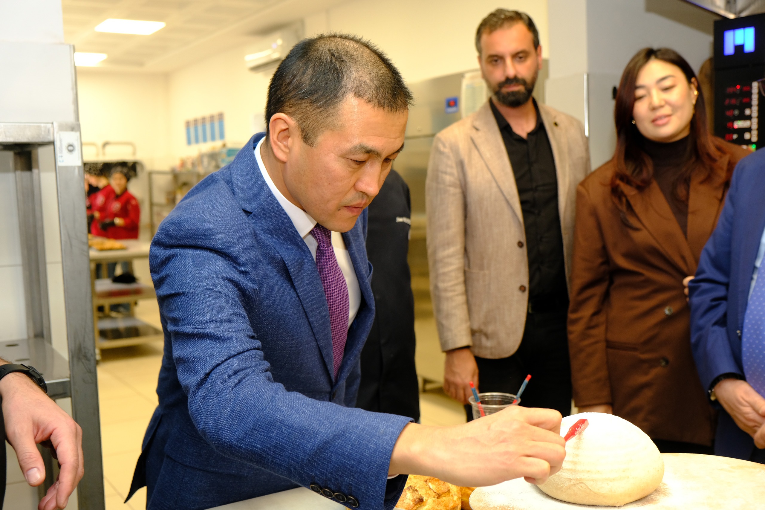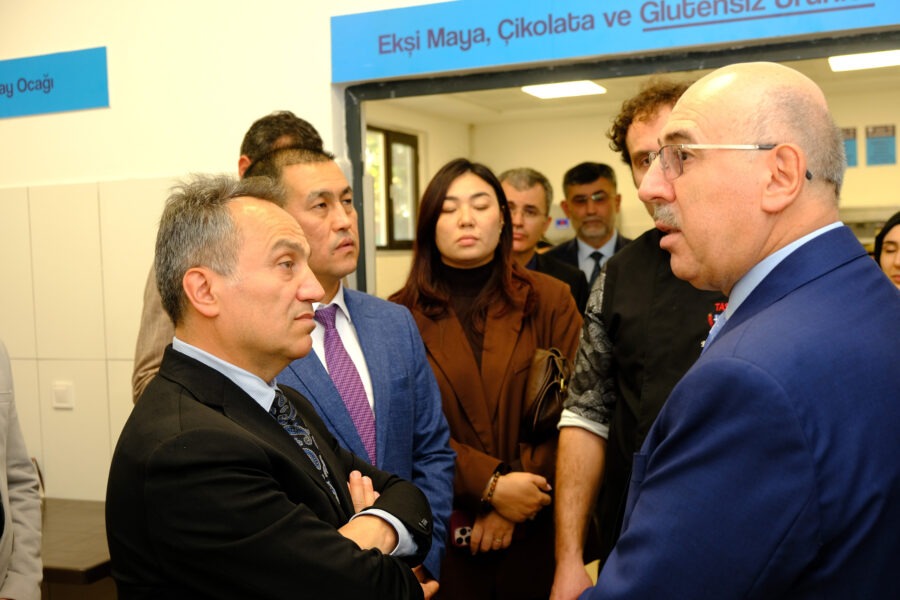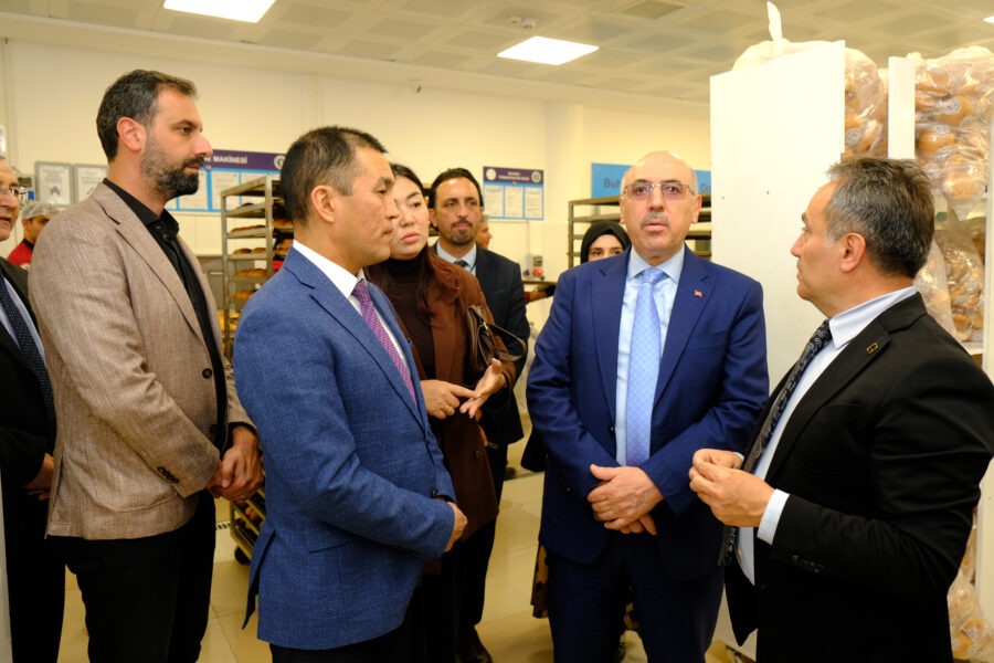 Konuklarımız, kampüs turunun ilk durağı olarak öğrencilere ve personele modern hizmetler sunan TOGÜ Mutfak’ı ziyaret etti. Burada yürütülen faaliyetler, sunulan yemek hizmetleri ve üretim süreçleri hakkında detaylı bilgi alındı.