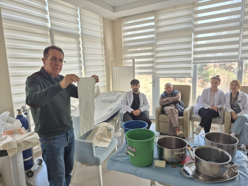 Etkinlikte katılımcılara, bitkisel kaynaklı boyaların elde edilme yöntemleri, geleneksel boyama teknikleri ve doğal renklerin kullanım alanlarına ilişkin bilgiler aktarıldı. Prof. Dr. Önal, doğal boyaların yüzyıllardır Anadolu kültürünün ayrılmaz bir parçası olduğunu vurgulayarak, bu tür uygulamaların hem kültürel mirasın yaşatılması hem de hastaların moral ve motivasyonunun artırılması açısından önemli olduğunu ifade etti. Akabinde çeşitli kumaşlara doğal boyalarla boyama uygulaması yapıldı.