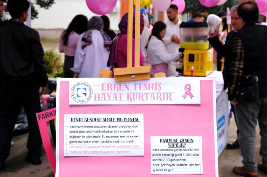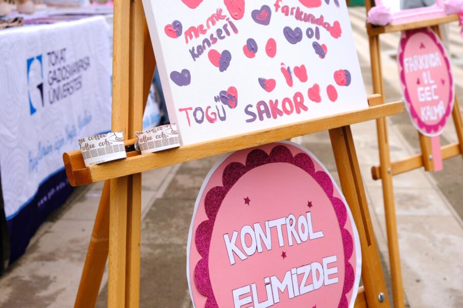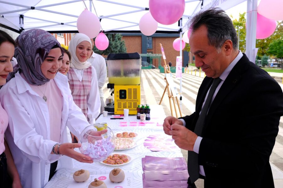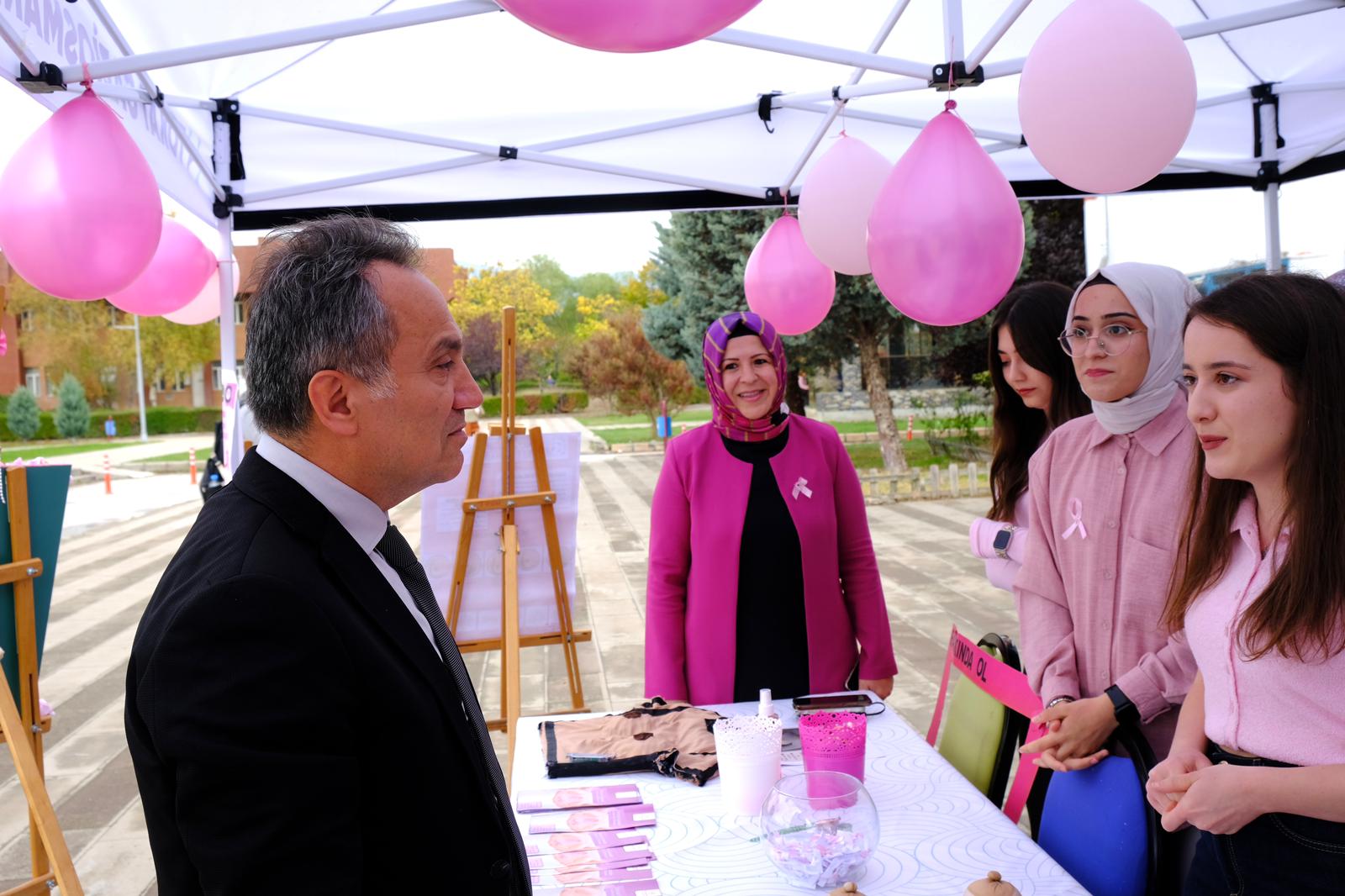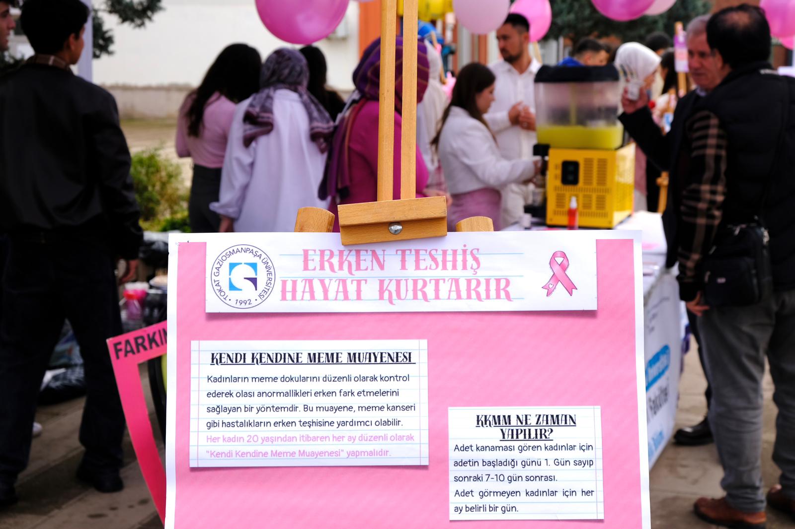 Merkezi Yemekhane önünde 11.00–14.00 saatleri arasında süren etkinlikte öğrencilere, kadınlarda en sık görülen kanser türlerinden biri olan meme kanserine karşı düzenli tarama, kendi kendine muayene yöntemleri ve erken tanının önemi hatırlatıldı.