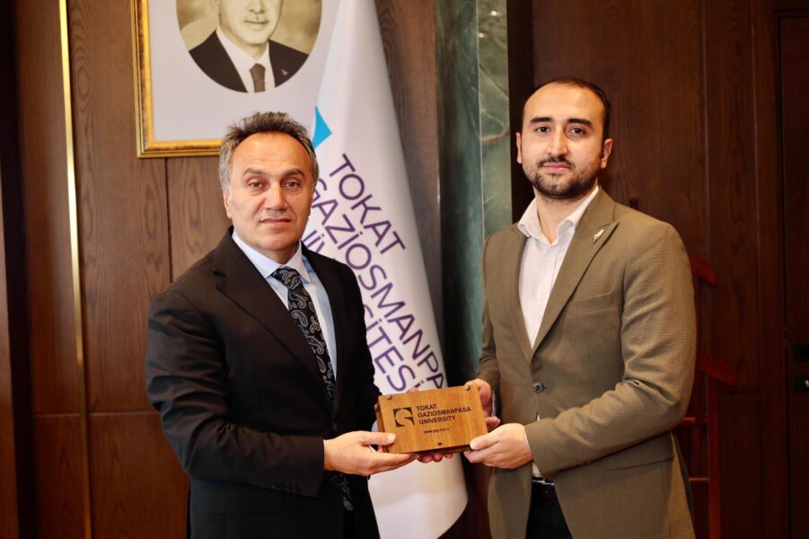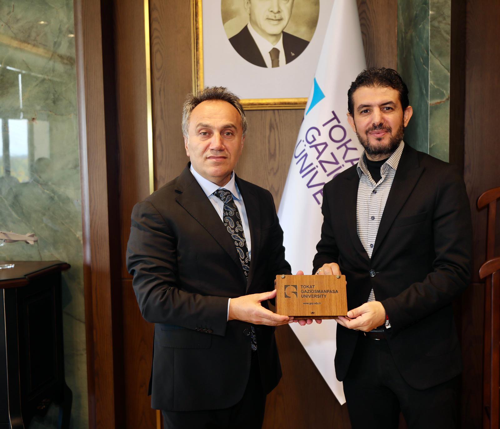 Üniversitemizde düzenlenen “Filistin Mücadelesi ve Hukuk” konferansı kapsamında Tokat’a gelen Gazeteci Dr. Zahir Beyoğlu ve Av. Mustafa Eminoğlu, Eğitim Bir-Sen Tokat Şube Başkanı Şaban Ceylan ve Genç Memur-Sen Başkanı Ahmet Sefa Kesler ile birlikte Rektörümüz Prof. Dr. Fatih Yılmaz’ı makamında ziyaret etti.
