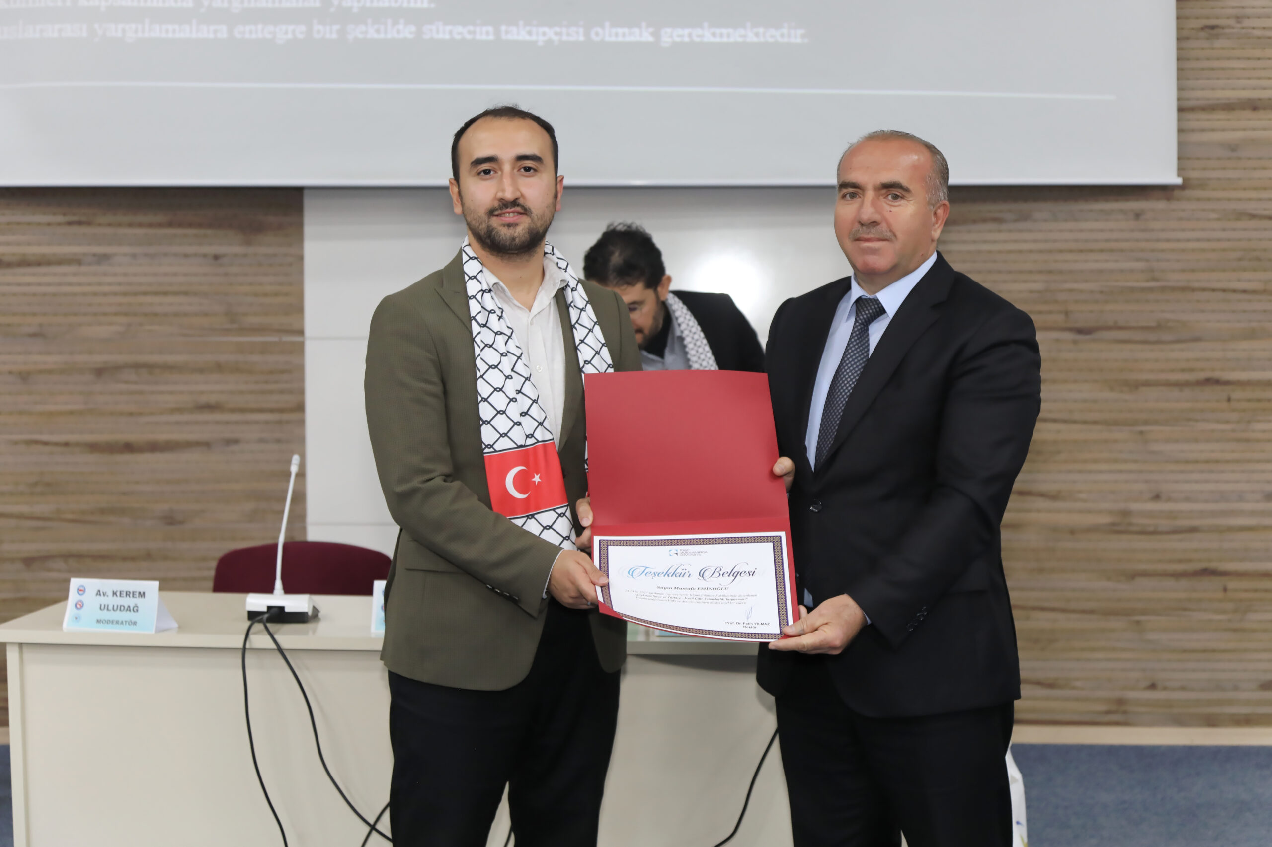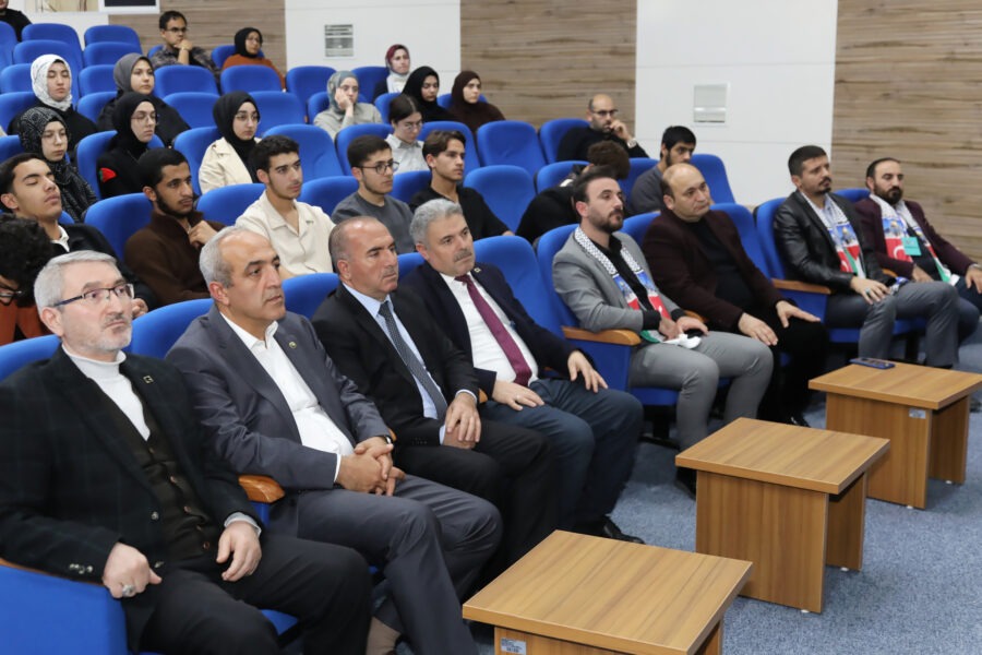 Üniversitemizde, Filistin meselesinin tarihsel ve hukuki boyutlarının ele alındığı “Filistin Mücadelesi ve Hukuk” başlıklı konferans düzenlendi. Eğitim Bir-Sen Tokat Şubesi ve Eğitim Destek Platformu iş birliğiyle gerçekleşen programa Rektör Yardımcısı Prof. Dr. Yusuf Temür, Eğitim Bir-Sen Tokat Şube Başkanı Şaban Ceylan, Genç Memur-Sen Başkanı Ahmet Sefa Kesler, öğrenciler, akademisyenler ve davetliler katıldı.