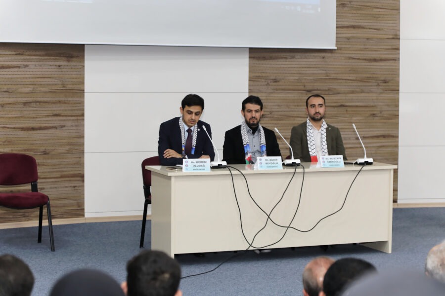Konferans, TOGÜ İslami İlimler Fakültesi Konferans Salonu’nda gerçekleştirildi. Programda, Kudüs Hukuk Derneği Avukatı Mustafa Eminoğlu ile Filistinli gazeteci Dr. Zahir Beyoğlu konuşmacı olarak yer aldı.
