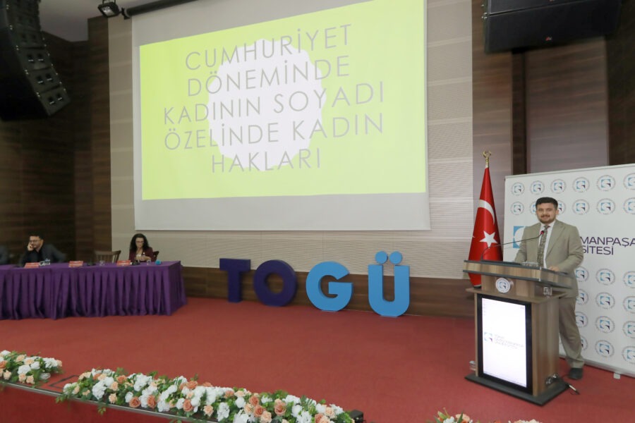 Ardından söz alan Arş. Gör. Abdullah Emre Kayaalp, “Cumhuriyet Döneminde Kadının Soyadı Özelinde Kadının Hakları” konulu sunumunda, Cumhuriyet’le birlikte medeni hukuk alanında yaşanan dönüşümü ve soyadı hakkı bağlamında kadının hukuk sistemindeki yerini ele aldı.