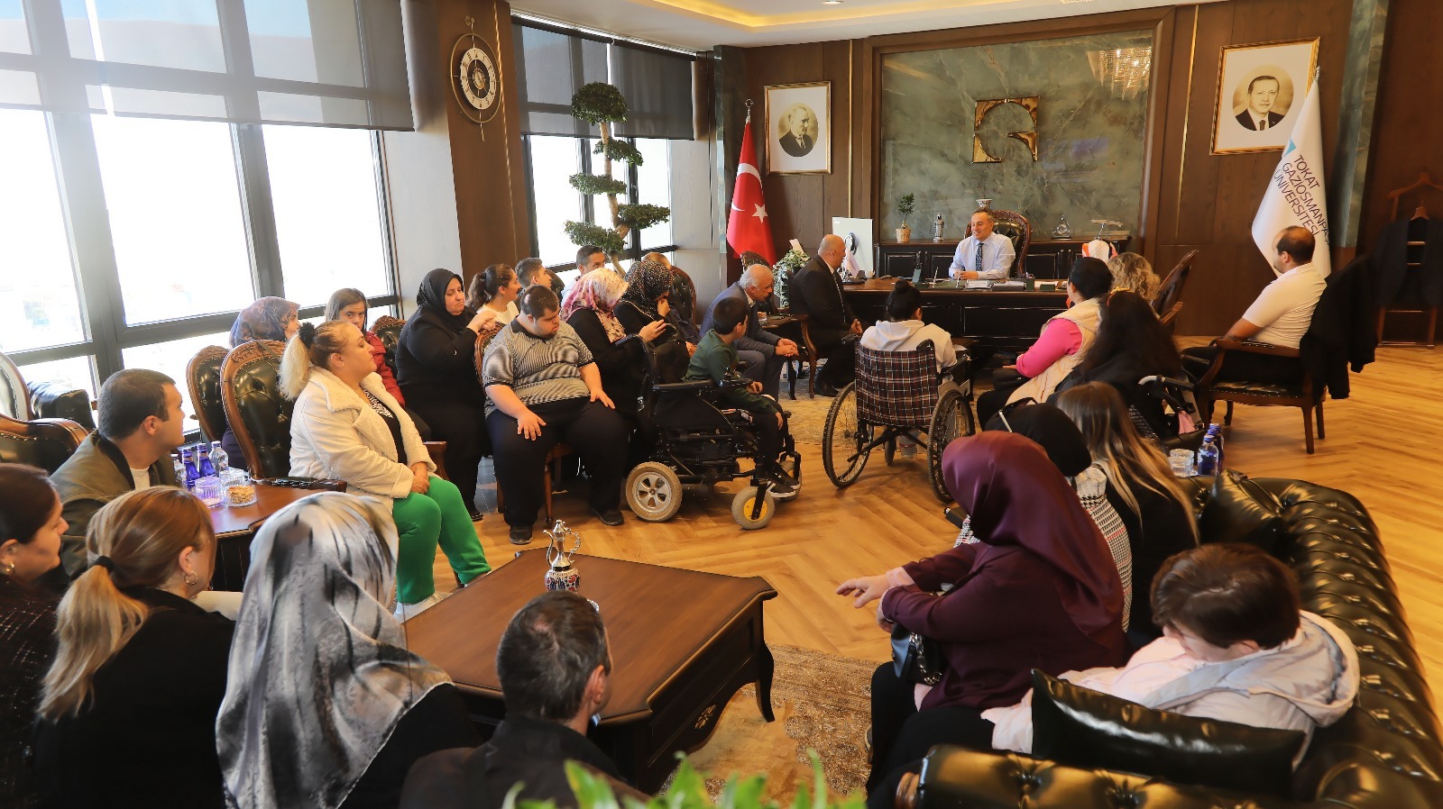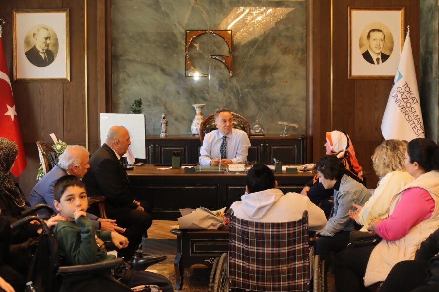 Türkiye Sakatlar Derneği Tokat Şube Başkanı Ali Aras ve dernek üyeleri, Rektörümüz Prof. Dr. Fatih Yılmaz’ı makamında ziyaret etti. Ziyarette, engelli bireylere yönelik yapılabilecek ortak çalışmalar ve iş birliği imkânları değerlendirildi.