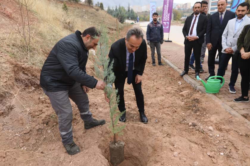 Rektörümüz Prof. Dr. Fatih Yılmaz, etkinlikte yaptığı değerlendirmede çevre duyarlılığı ve sürdürülebilirlik konusunun üniversitemizin öncelikleri arasında yer aldığını ifade etti. Rektörümüz, “Her dikilen fidan geleceğe bırakılan bir nefes, bir umuttur. Üniversite olarak yeşil kampüs anlayışını yalnızca bir slogan olarak değil, somut projelerle hayata geçiriyoruz. Bu tür etkinlikler, hem öğrencilerimizin çevreye olan duyarlılığını artırıyor hem de doğayla iç içe bir eğitim ortamı oluşturuyor” dedi.
