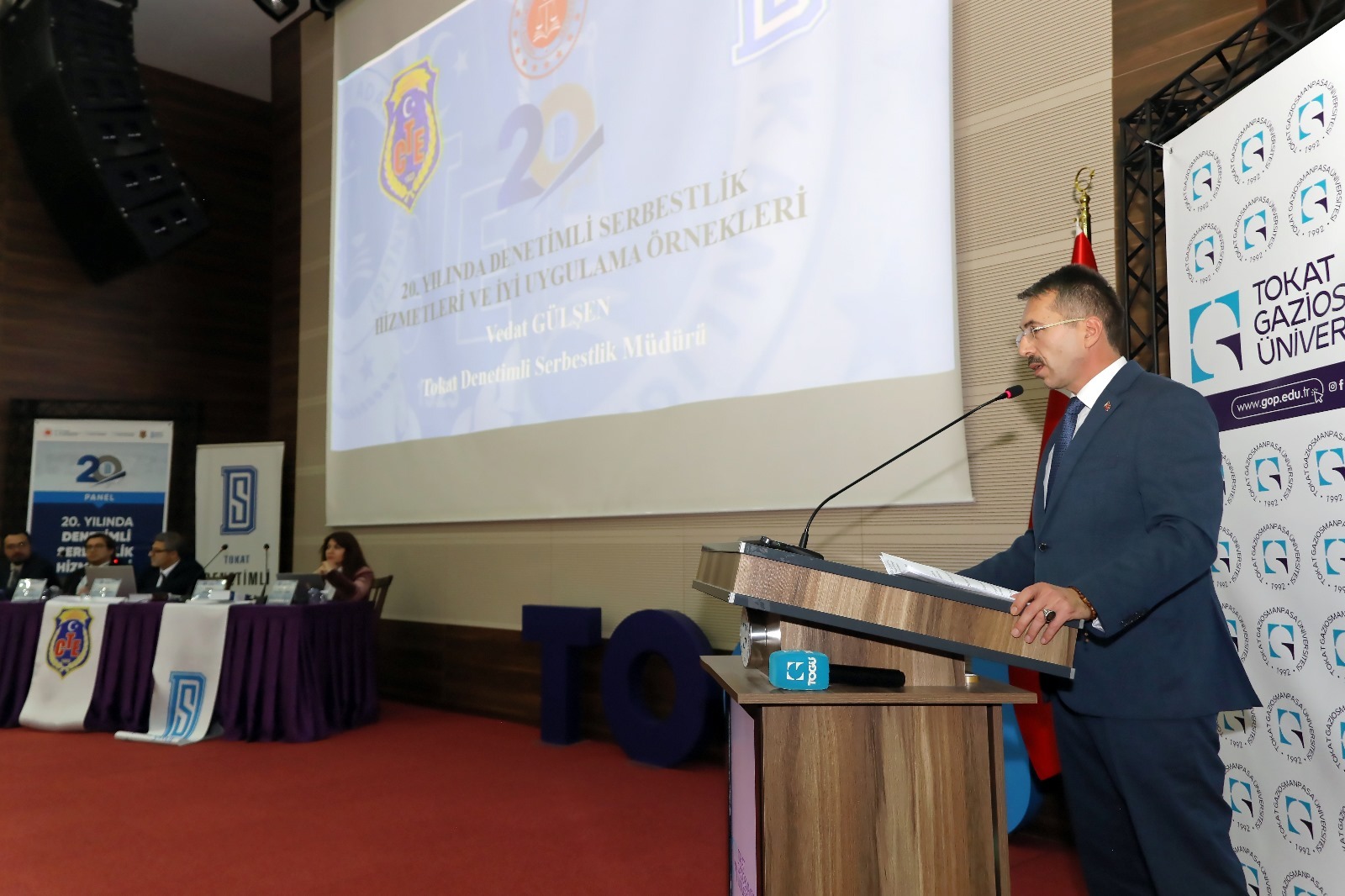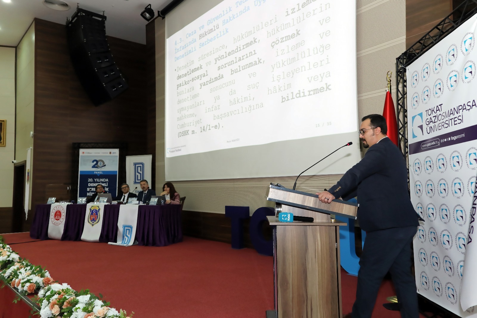 Panelin açılışında konuşan Ceza İnfaz Kurumu ve Tokat Denetimli Serbestlik Müdürlüğünden sorumlu Cumhuriyet Savcısı Ahmet Gebel, denetimli serbestlik sistemi konusunda bilgi aktardı. Gebel, denetimli serbestliğin yalnızca cezai yaptırımı hafifleten bir mekanizma değil, aynı zamanda bireyin sosyal hayata uyumunu destekleyen kapsamlı bir rehabilitasyon süreci olduğunu belirtti.