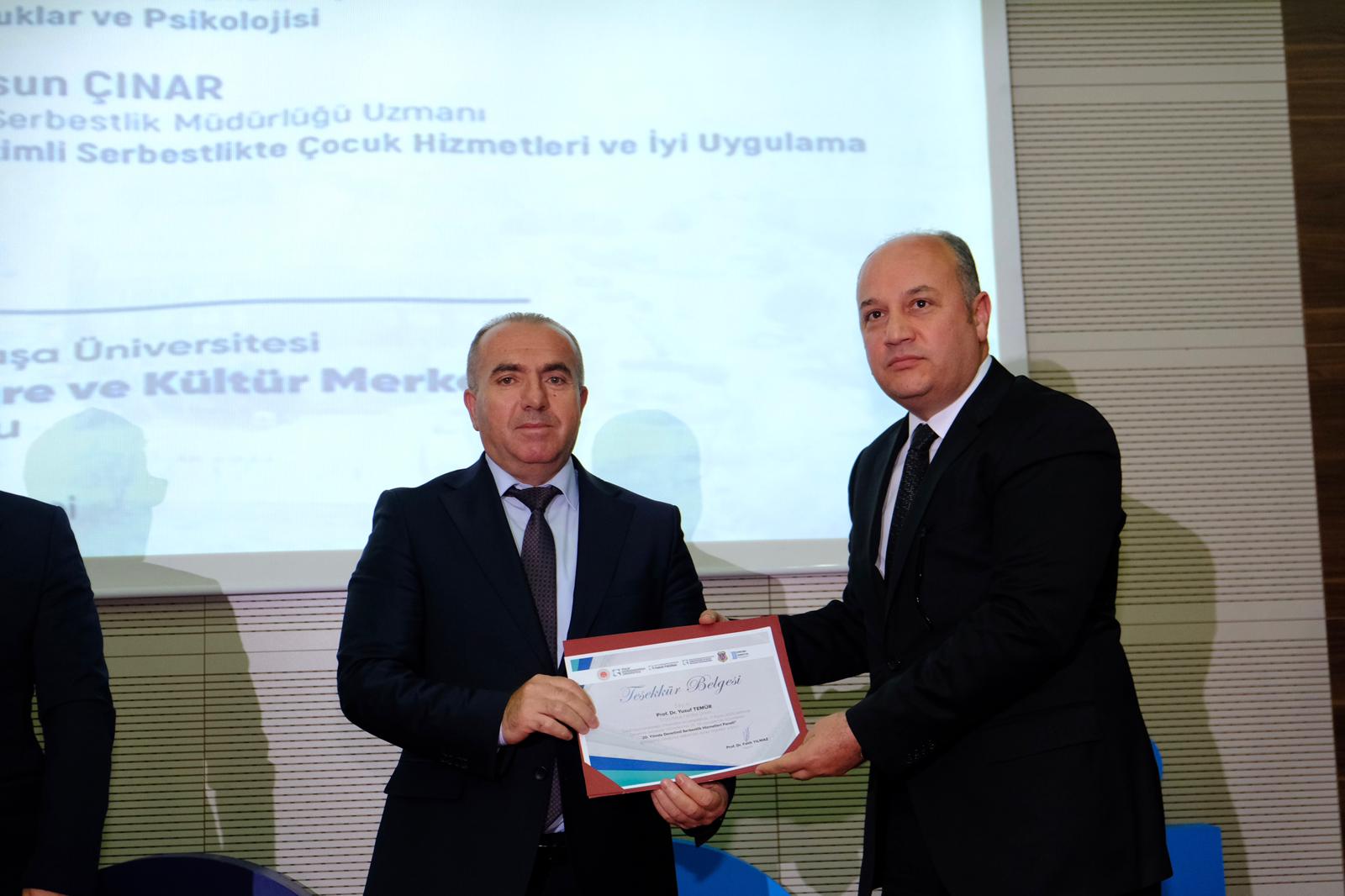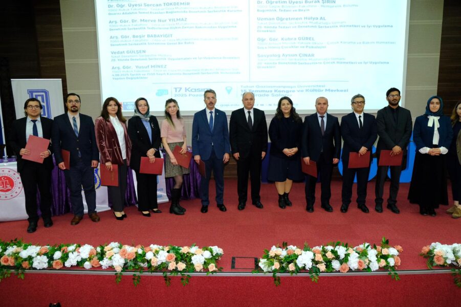 Panelin ikinci oturumu, “Denetimli Serbestlikte Tedavi, Rehabilitasyon ve Çocuk Odaklı Yaklaşımlar” başlığıyla düzenlendi ve Hukuk Fakültesi Dekanı Prof. Dr. Yusuf Temür tarafından yönetildi. Bu oturumda, Dr. Öğr. Üyesi Burak Şirin bağımlılık olgusunu nörolojik temelleriyle ele alarak tedavi sürecinin bilimsel boyutunu aktardı. Uzman Öğretmen Hülya Al, tedavi ve denetimli serbestlik hizmetlerinin 20 yıllık gelişimini değerlendirerek sahadan iyi uygulama örnekleri sundu. Öğr. Gör. Kübra Gürel, suça itilmiş çocukların psikolojik süreçleri ve destek mekanizmaları üzerine önemli değerlendirmelerde bulundu. Sosyolog Aysun Çınar ise denetimli serbestlikte çocuklara yönelik hizmetlerin tarihsel gelişimi ve başarılı uygulama örneklerini paylaştı. Oturum, konuşmacıların sunumlarının ardından gerçekleştirilen belge takdimiyle tamamlandı.