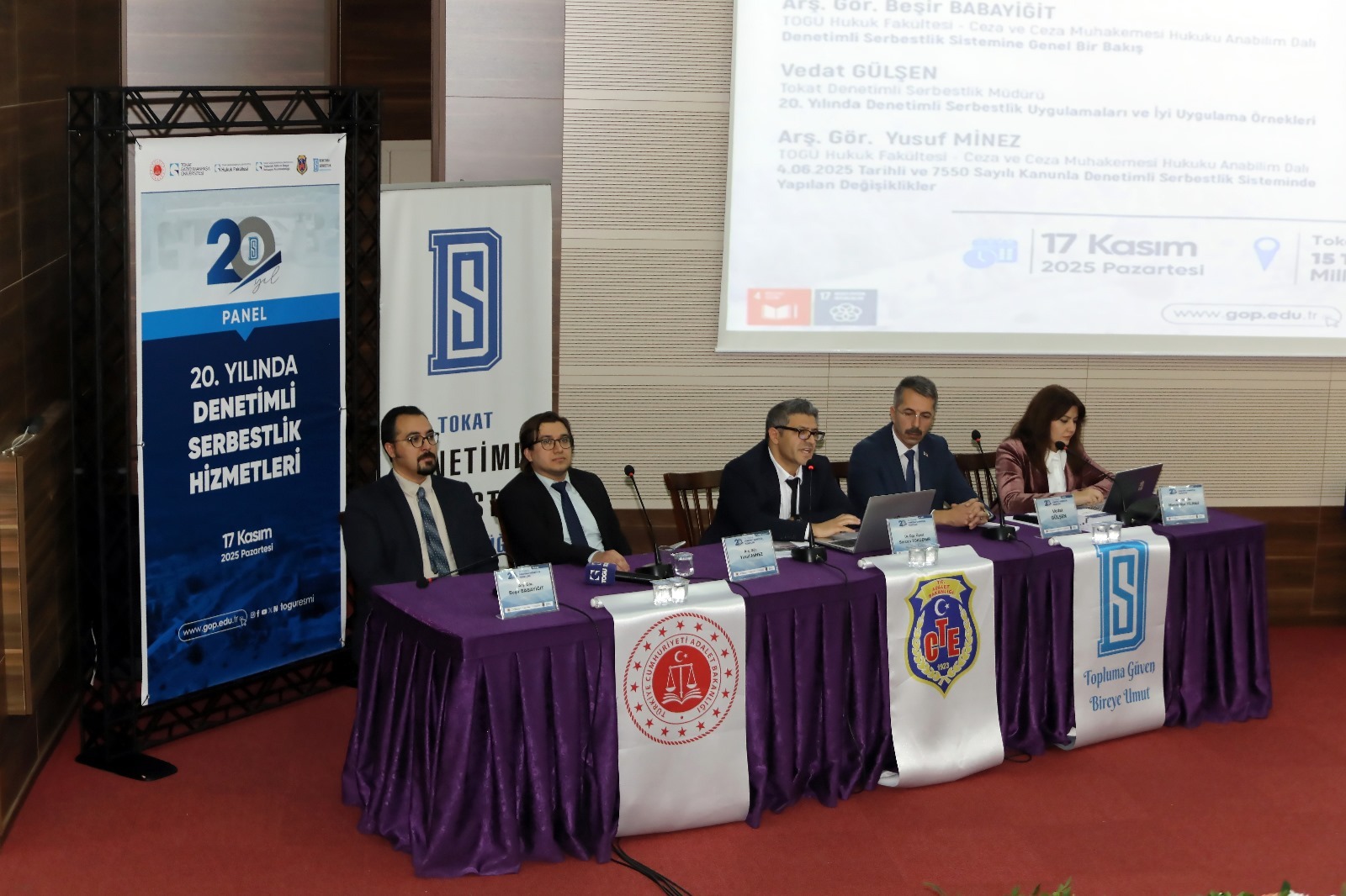 Üniversitemiz Hukuk Fakültesi, Toplumsal Katkı ve Sosyal İnovasyon Koordinatörlüğü, Ceza İnfaz Kurumu ve Tokat Denetimli Serbestlik Müdürlüğü tarafından düzenlenen “20. Yılında Denetimli Serbestlik Hizmetleri Paneli” 15 Temmuz Kongre ve Kültür Merkezi Milli İrade Salonu’nda gerçekleştirildi. Panele Rektör Yardımcısı Prof. Dr. Yusuf Temür, Cumhuriyet Savcısı Ahmet Gebel, akademisyenler ve öğrenciler katıldı.