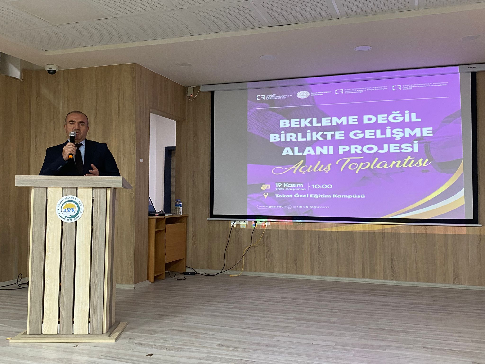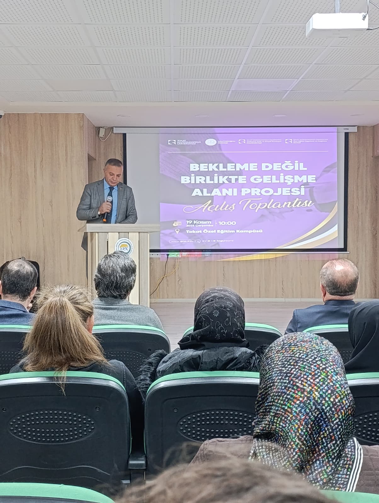 Üniversitemiz (TOGÜ) Toplumsal Katkı ve Sosyal İnovasyon Koordinatörlüğü, Tokat İl Millî Eğitim Müdürlüğü, TOGÜ Özel Eğitim Uygulama ve Araştırma Merkezi ile Tokat Rehberlik ve Araştırma Merkezi iş birliğinde yürütülen “Bekleme Değil Birlikte Gelişme Alanı Projesi”, açılış toplantısıyla resmen başladı. Tokat Özel Eğitim Kampüsü’nde yapılan toplantıya Rektör Yardımcısı Prof. Dr. Yusuf Temür, Toplumsal Katkı ve Sosyal İnovasyon Koordinatörü Prof. Dr. Mihriban Coşkun Arslan, Tokat İl Millî Eğitim Müdür Yardımcısı Mustafa Dizman, akademik personel ve vatandaşlar katıldı.
