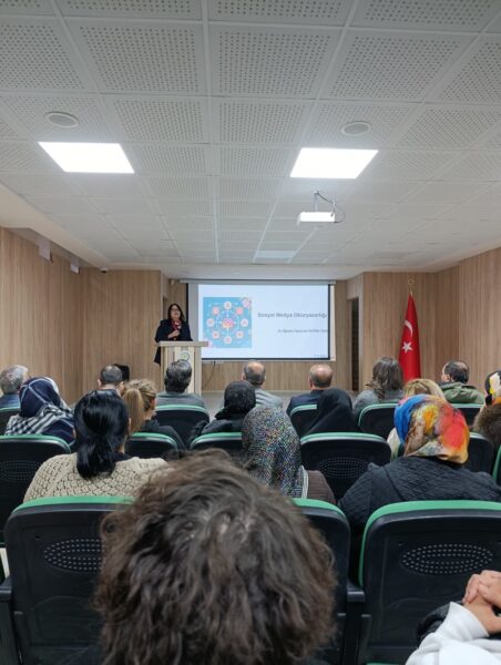 Toplantının ardından projenin ilk etkinliği olan “Sosyal Medya Okuryazarlığı Eğitimi”, Toplumsal Katkı ve Sosyal İnovasyon Koordinatör Yardımcısı Dr. Öğr. Üyesi Aslı Öztürk Terzi tarafından verildi.