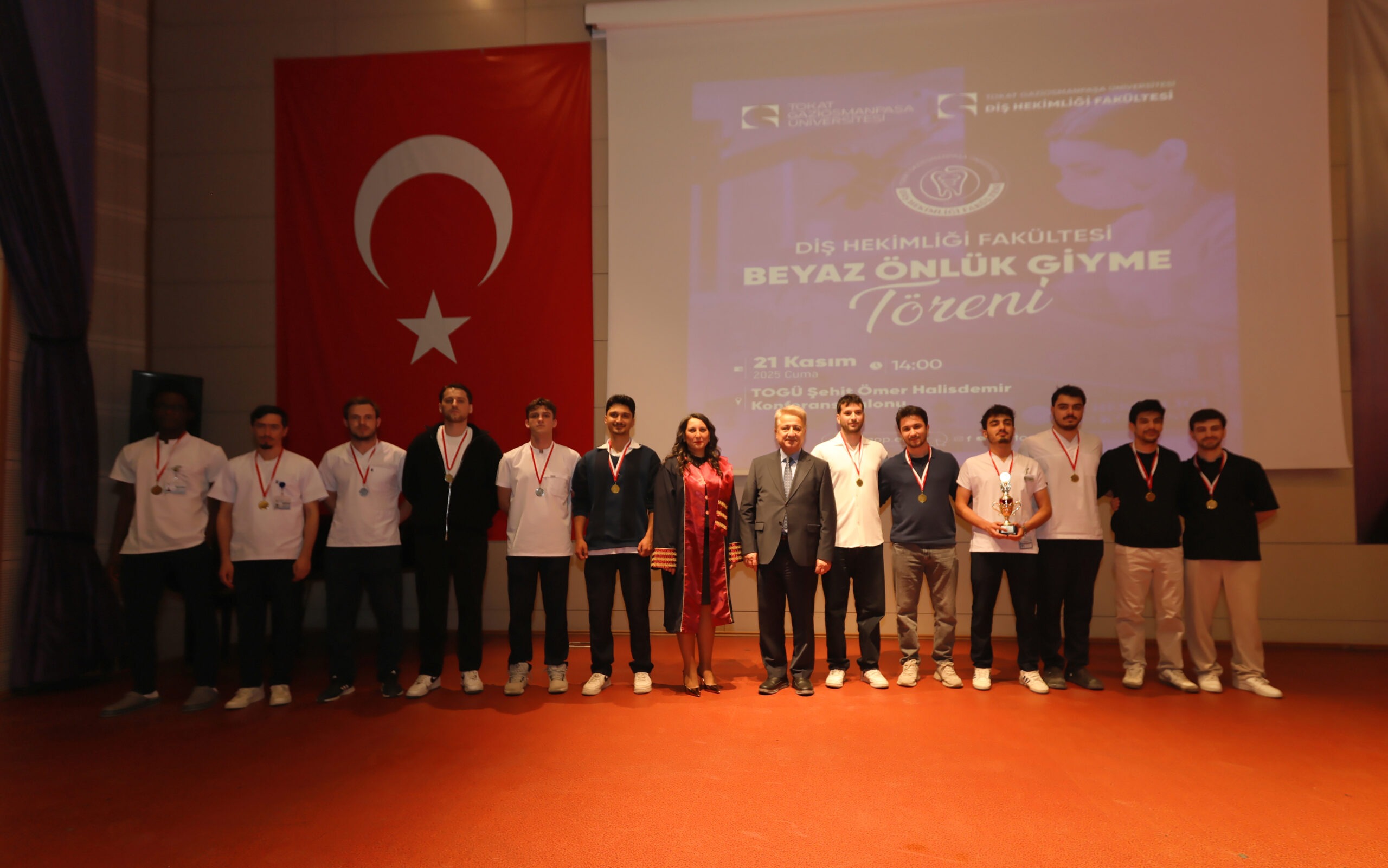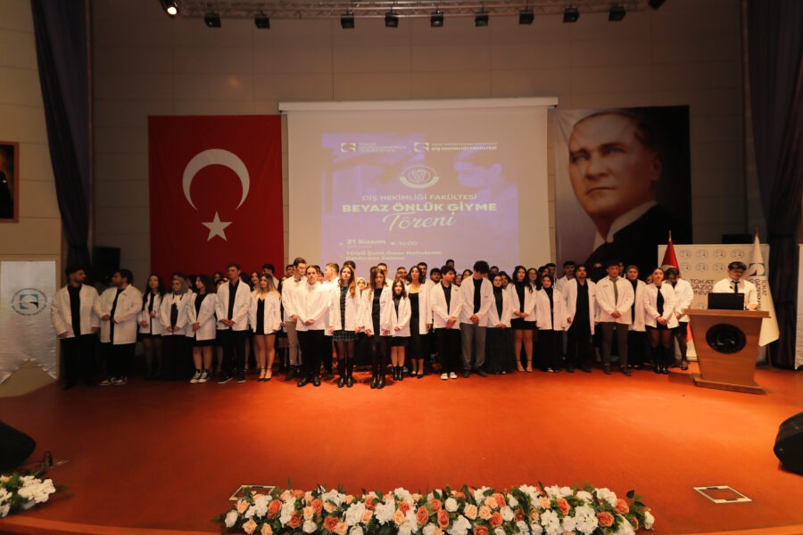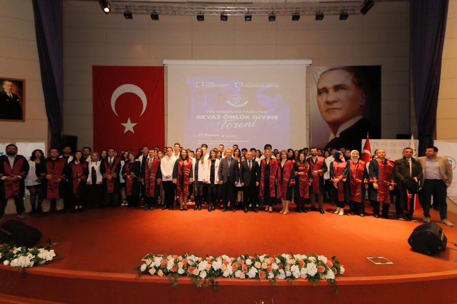 Törende Diş Hekimliği Fakültesi birinci sınıf öğrencilerine beyaz önlükleri öğretim üyeleri tarafından giydirildi. Tören, toplu fotoğraf çekiminin ardından sona erdi.