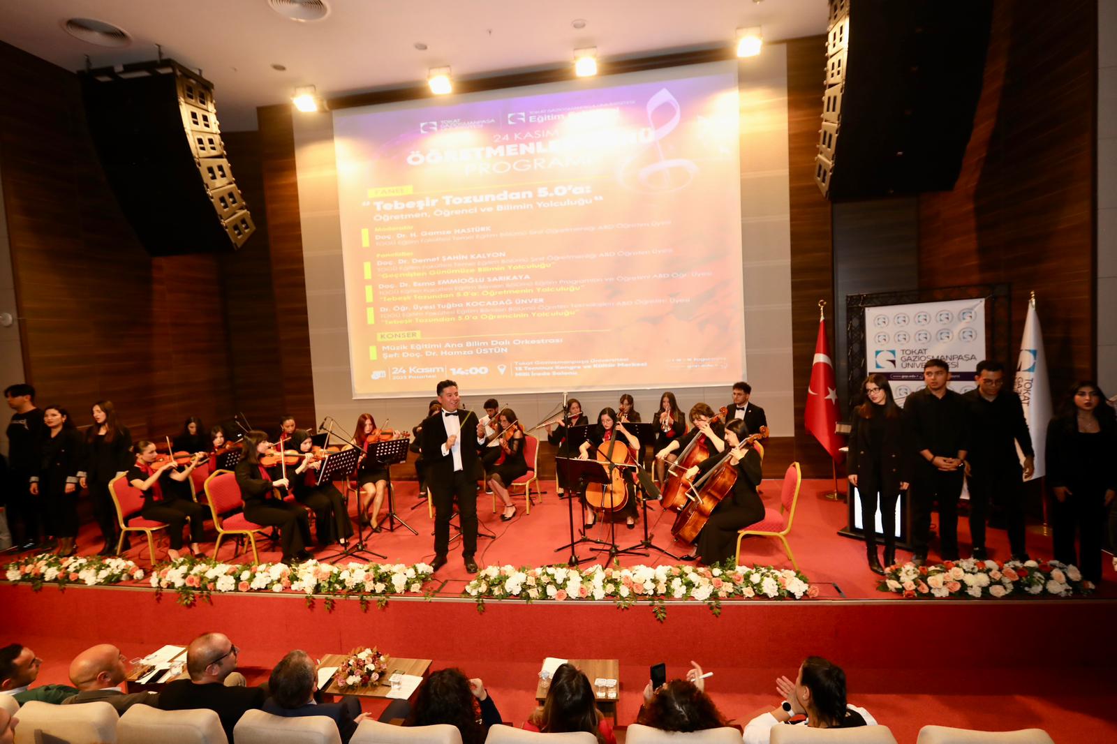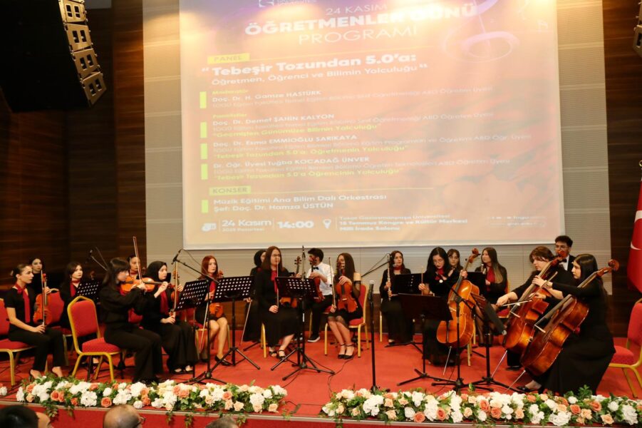 Panelin ardından Müzik Eğitimi Ana Bilim Dalı Orkestrası, şef Doç. Dr. Hamza Üstün yönetiminde sahne aldı. Öğretmenler Günü’ne özel hazırlanan seçki, salondaki öğretmen ve öğretmen adaylarına duygusal anlar yaşattı.