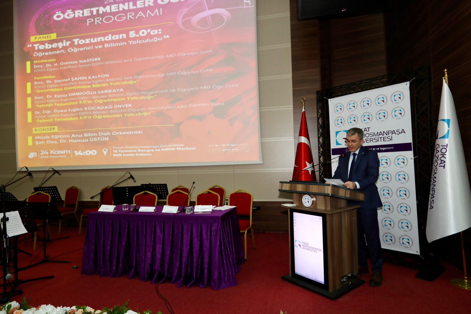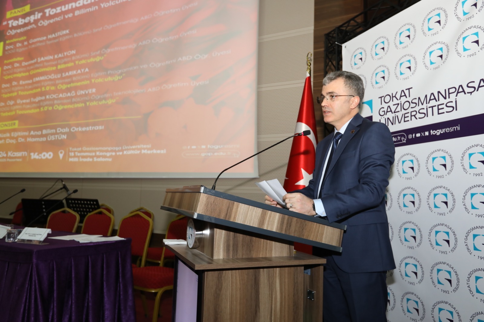 Üniversitemiz Eğitim Fakültesi tarafından, 24 Kasım Öğretmenler Günü kapsamında kutlama programı düzenlendi. “Tebeşir Tozundan 5.0’a: Öğretmen, Öğrenci ve Bilimin Yolculuğu” başlıklı panel ve konserden oluşan etkinlik, 15 Temmuz Kongre ve Kültür Merkezi Milli İrade Salonunda gerçekleştirildi.