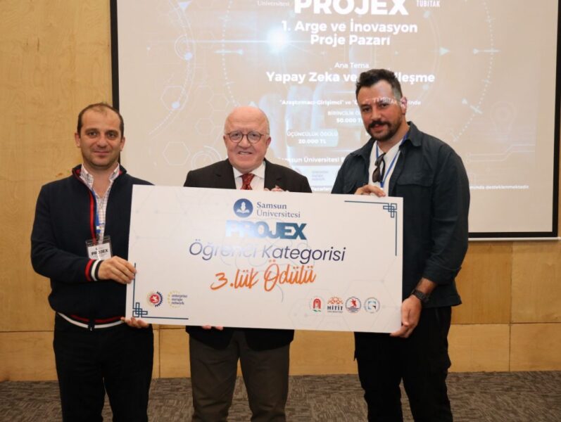 Üniversitemiz, Samsun Üniversitesi tarafından düzenlenen “PROJEX – 1. Ar-Ge ve İnovasyon Proje Pazarı” etkinliğine katılarak iki farklı kategoride önemli ödüllerin sahibi oldu. Yapay zekâ, dijital teknolojiler ve yenilikçi çözümlere odaklanan etkinlik, Samsun Üniversitesi Ballıca Kampüsü Asmaaltı Sosyal Alanı’nda gerçekleştirildi.