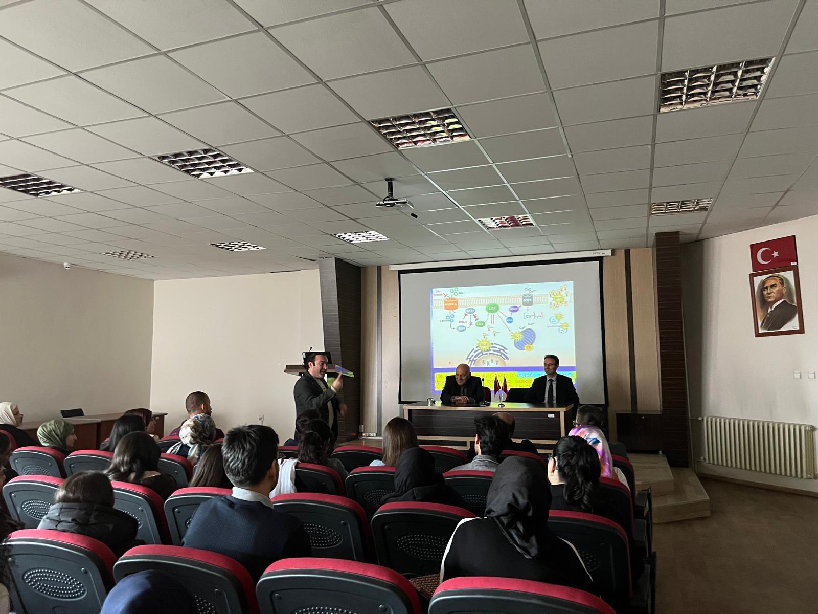 Fen-Edebiyat Fakültesi Şehit Erdem Diker Konferans Salonu’nda düzenlenen MBG Seminer Serisi kapsamında, konuk araştırmacılar “Hücre Ölümü Modellerinin Ultra Yapısal Özellikleri” başlıklı bir konferans verdi. Sunum, akademisyenler ve öğrenciler tarafından ilgiyle takip edildi.