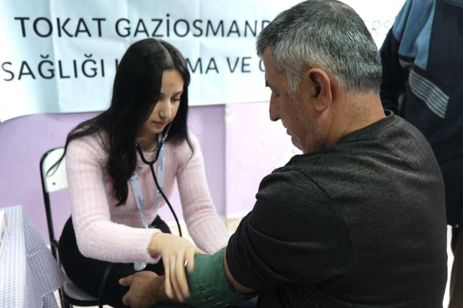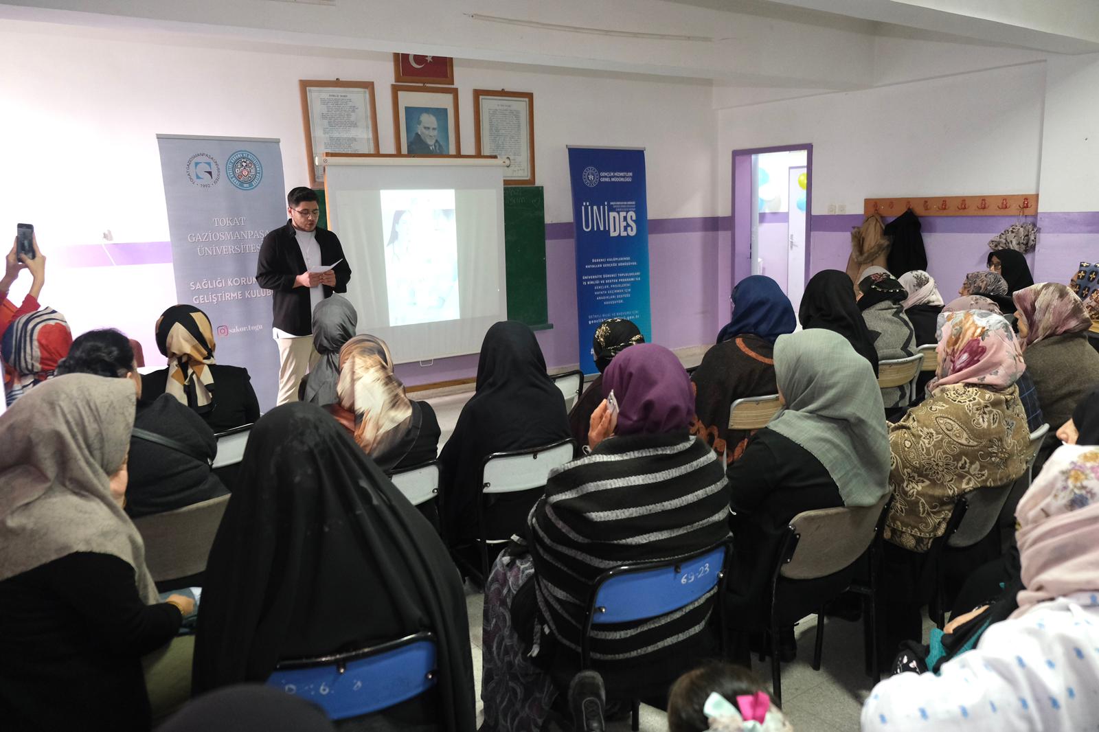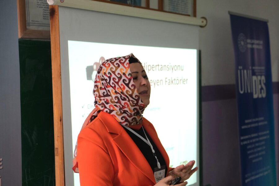 Üniversitemizin ÜNİDES desteğiyle hayata geçirdiği “Yolları Aşıyoruz, Sağlık Taşıyoruz” projesi, 11-12 Aralık 2025 tarihlerinde Tokat Merkez Kömeç Köyü’nde büyük bir ilgiyle gerçekleştirildi. İki gün süren etkinlik kapsamında hem sağlık eğitimleri verildi hem de kapsamlı sağlık taramaları yapılarak köy halkının sağlık hizmetlerine erişimi güçlendirildi. Projenin ilk gününde gerçekleştirilen açılış konuşmaları Hemşirelik Bölümü öğrencisi Mehmet Can Geçer ve Proje Danışmanı Dr. Öğr. Üyesi Tuğba Solmaz tarafından yapıldı. Açılış konuşmalarının ardından düzenlenen eğitimlerde Dr. Öğr. Üyesi Tuğba Solmaz “Hipertansiyon ve Korunma”, Dr. Öğr. Üyesi Mukaddes Demir Acar ile Dr. Öğr. Üyesi Mehtap Solmaz “Diyabet ve Korunma”, Doç. Dr. Kübra Esin ise “Sağlıklı Beslenme” konularında bilgilendirici sunumlar gerçekleştirdi. Toplam 100 kişinin katıldığı bu eğitimler, halkın kronik hastalıklar hakkında farkındalığını artırarak günlük yaşamlarında uygulayabilecekleri önemli bilgiler sundu.