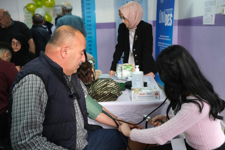 Üniversitemiz Sağlığı Koruma ve Geliştirme Kulübünün ÜNİDES desteğiyle yürüttüğü “Yolları Aşıyoruz, Sağlık Taşıyoruz” projesi, üniversite-halk bütünleşmesini güçlendiren örnek bir sosyal sorumluluk faaliyeti olarak öne çıktı.