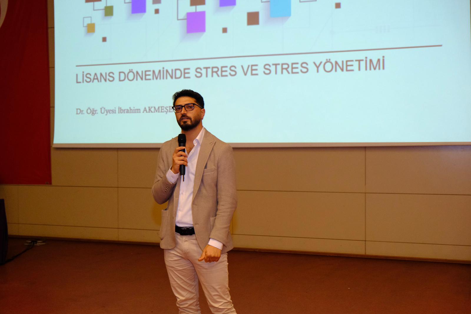 Panelde konuşmacı olarak Fen-Edebiyat Fakültesi Psikoloji Bölümü öğretim üyelerinden Dr. Öğr. Üyesi İbrahim Akmeşe, “Lisans Döneminde Stres ve Stres Yönetimi” başlıklı sunumuyla öğrencilerin stresle başa çıkma yöntemlerine değindi. Arş. Gör. Göksin Özge Çakar ise “Akademide Duygusal Dayanıklılık ve Duygu Düzenleme” konulu sunumunda, üniversite yaşamında duygusal farkındalık ve psikolojik sağlamlığın önemini vurguladı.